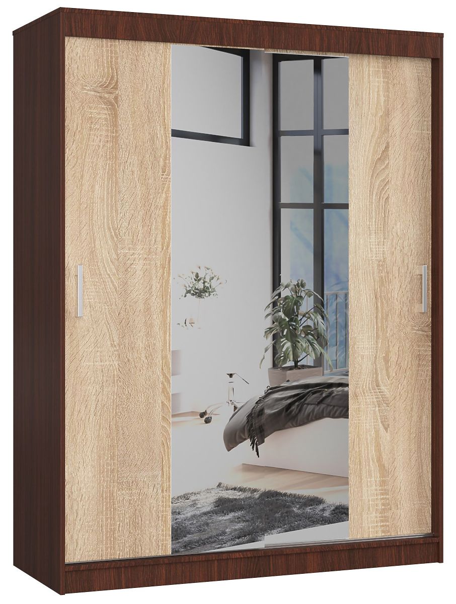 150 cm-es wenge/sonoma színű tolóajtós szekrény tükörrel. .. többet