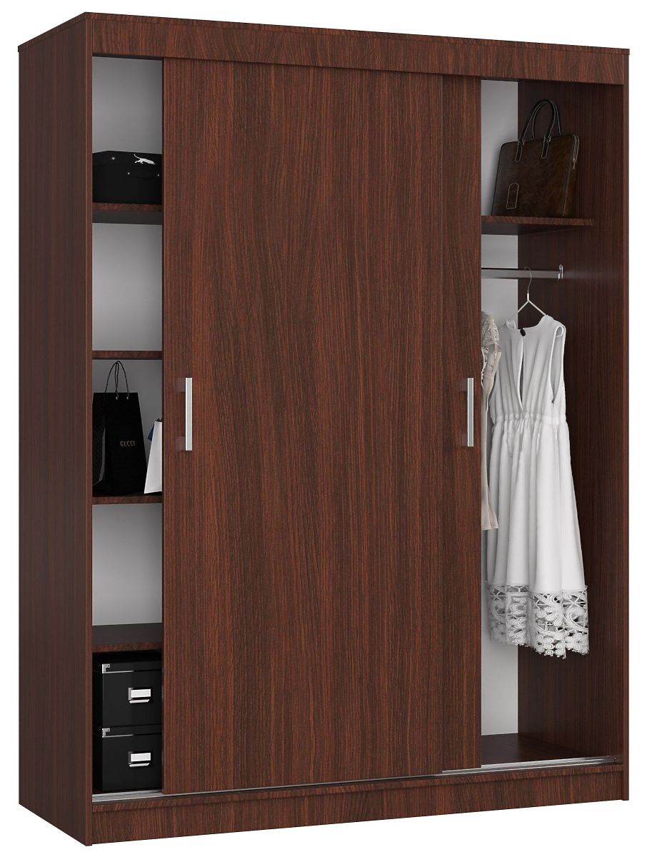 A 150 cm-es CLP tolószekrény mono wenge színben ideális választás a klasszikus stílus kedvelőinek. A bútor elegáns és egyszerű formájú, ideálisan illik a hálószobába, nappaliba vagy gardróbba. Kiválóan illeszkedik az eleganciát hangsúlyozó berendezésekhez. A bútor funkcionális és tartós, egyúttal megkönnyíti a ruhák és textíliák rendben tartását. Két személy számára készült.