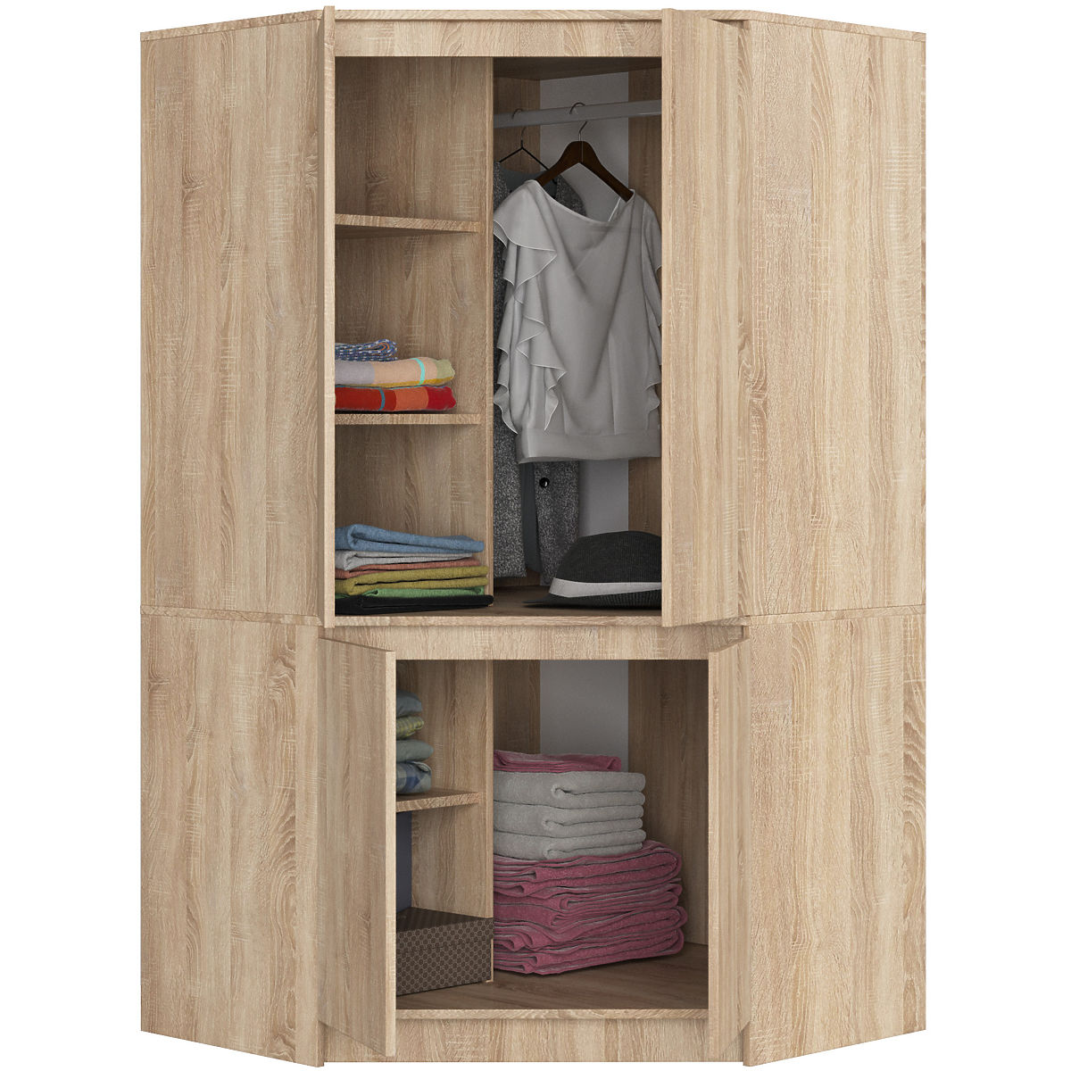 A négyrészes ruhásszekrény tartós laminált lapból készült. A bútor korpusza teljesen sonoma tölgy színű. Rúddal és 6 polccal van felszerelve, ami sok tárolóhelyet biztosít.