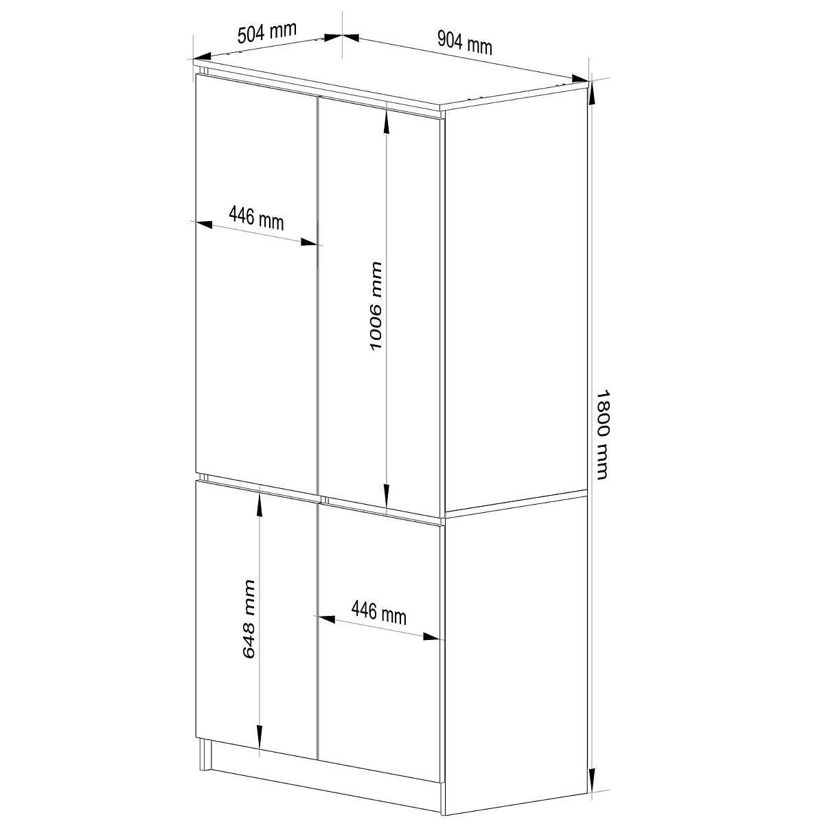 A négyajtós szekrény univerzális és praktikus bútordarab, amely kiválóan kiegészíti a hálószoba, előszoba vagy nappali berendezését stúdió típusú belső terekben. Az elegáns kivitel és a fehér szín biztosítja, hogy a szekrény tökéletesen illeszkedik klasszikus és modern elrendezésekbe egyaránt. A szekrény tágas polcokkal van felszerelve, amelyek ideálisak ruhadarabok vagy tartalék ágyneműhuzatok, lepedők, asztalterítők vagy takarók tárolására. Az ajtók mögött elhelyezett részben ruhatartó rúd található. A polcok használhatók pulóverek, blúzok, táskák, de akár törölközők tárolására is. A rúd pedig öltönyök, ruhák, szoknyák és felsőruházat, például kabátok vagy dzsekik felakasztására szolgál. A bútor gondos kidolgozása a legjobb minőségű, kopásálló laminált lapból készült. A szekrény élei esztétikus ABS élzárással vannak lezárva.