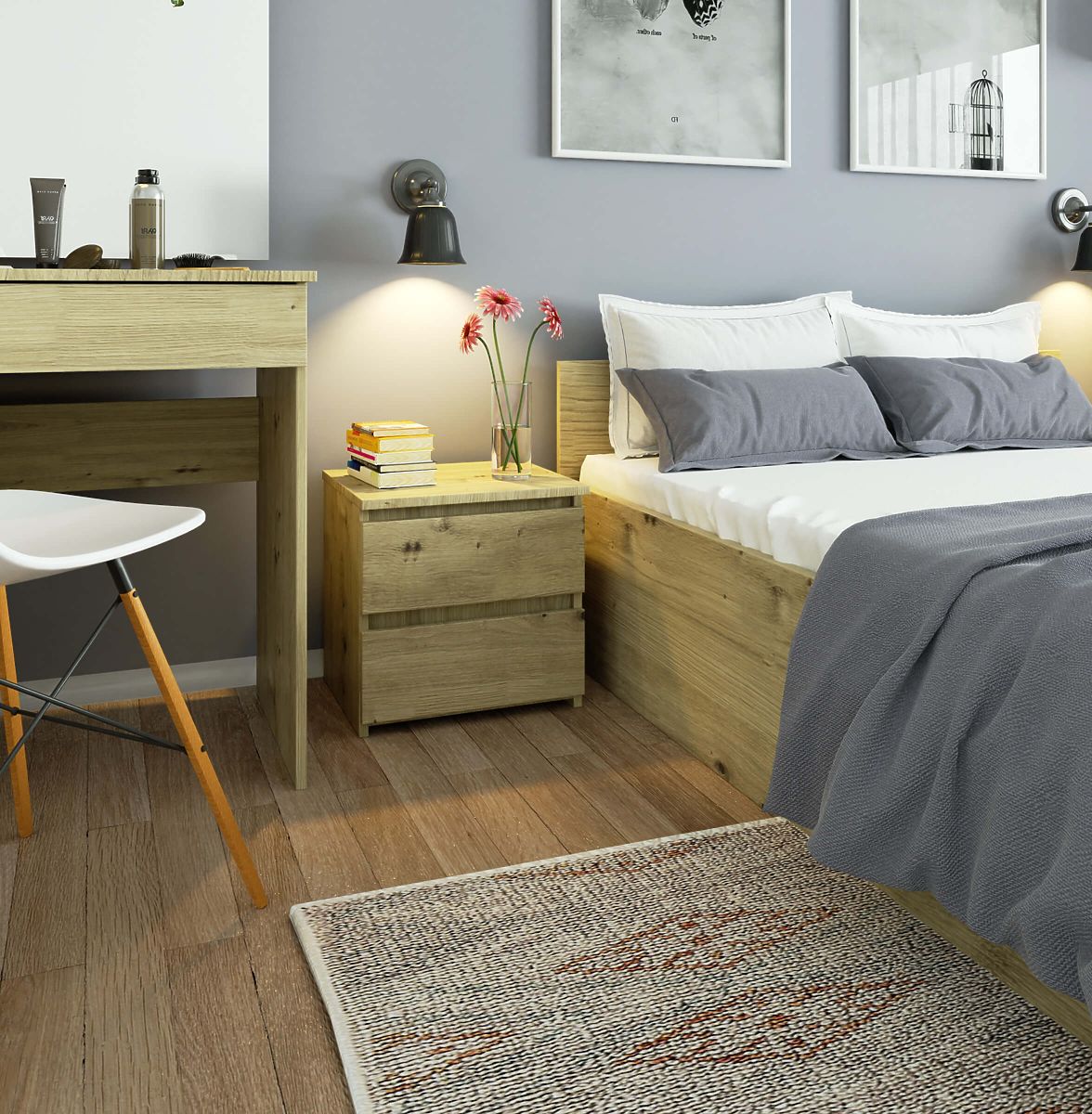 Az éjjeliszekrények népszerű bútordarabok, amelyeket az ágy mellé helyeznek. Az asztallapon gyakran lámpa található, míg belül olyan tárgyak, amelyek megkönnyítik a pihenést és az alvást. Azok, akik elegáns komódot keresnek, figyelmet kell fordítaniuk a 40 cm-es CL2 éjjeliszekrényre artisan tölgy színben. Gyönyörűen mutat minden hálószobában. Gyerekszobába is elhelyezhető.