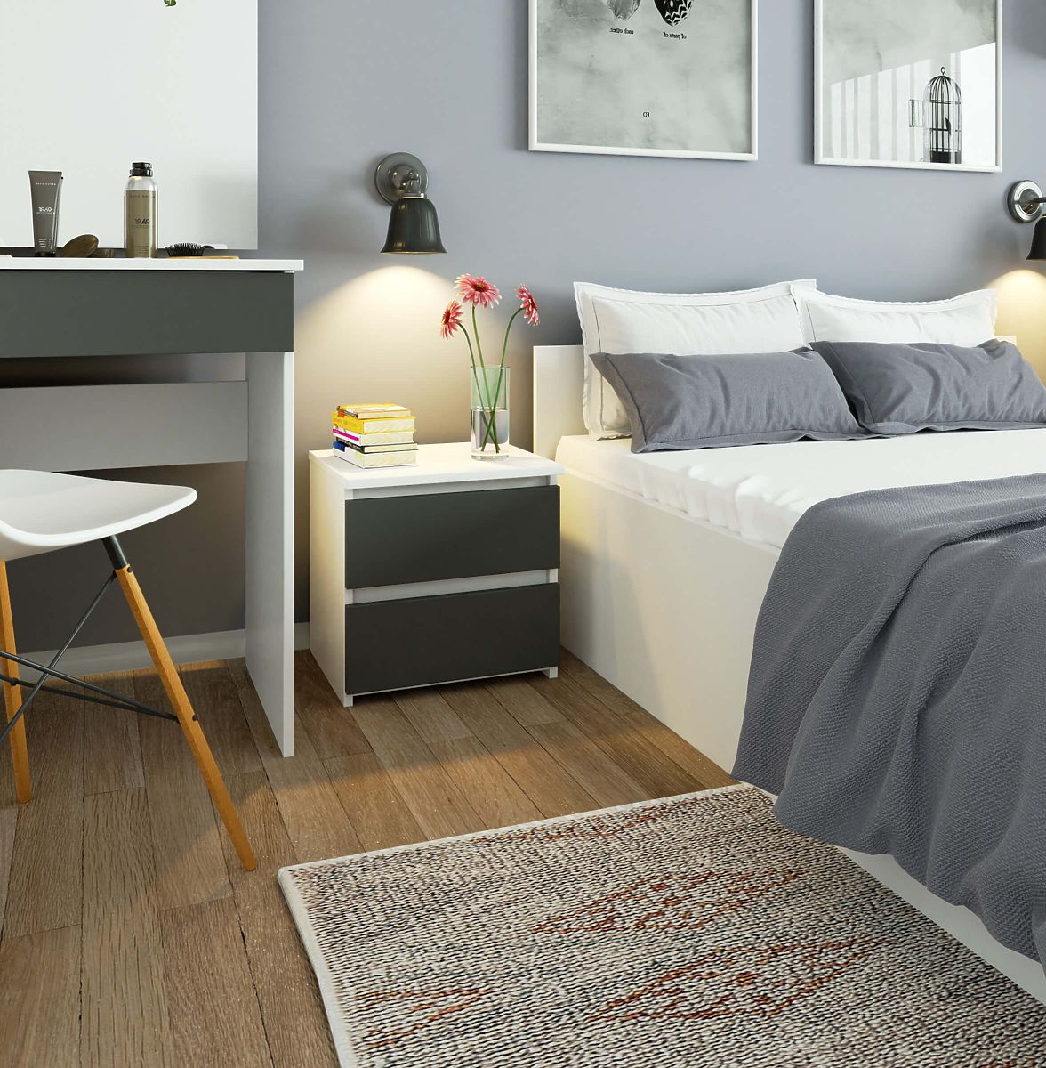 Fehér és grafit szürke éjjeliszekrény 2 fiókkal. .. többet