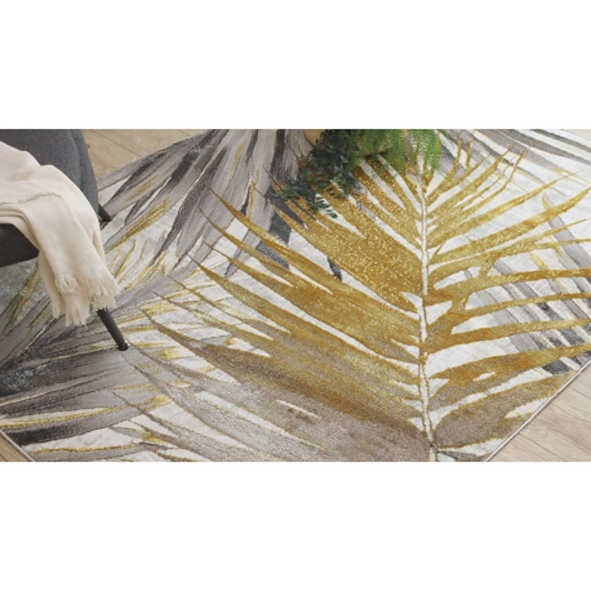 Lukafurniture.hu » Textil / szőnyeg / BLISS Z217AZ276 szőnyeg arany / szürke - Pálmalevelek, modern, szerkezeti