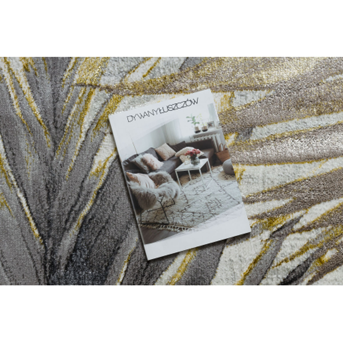 Arany és szürke szőnyeg pálmalevél mintával és modern eleganciával. .. többet