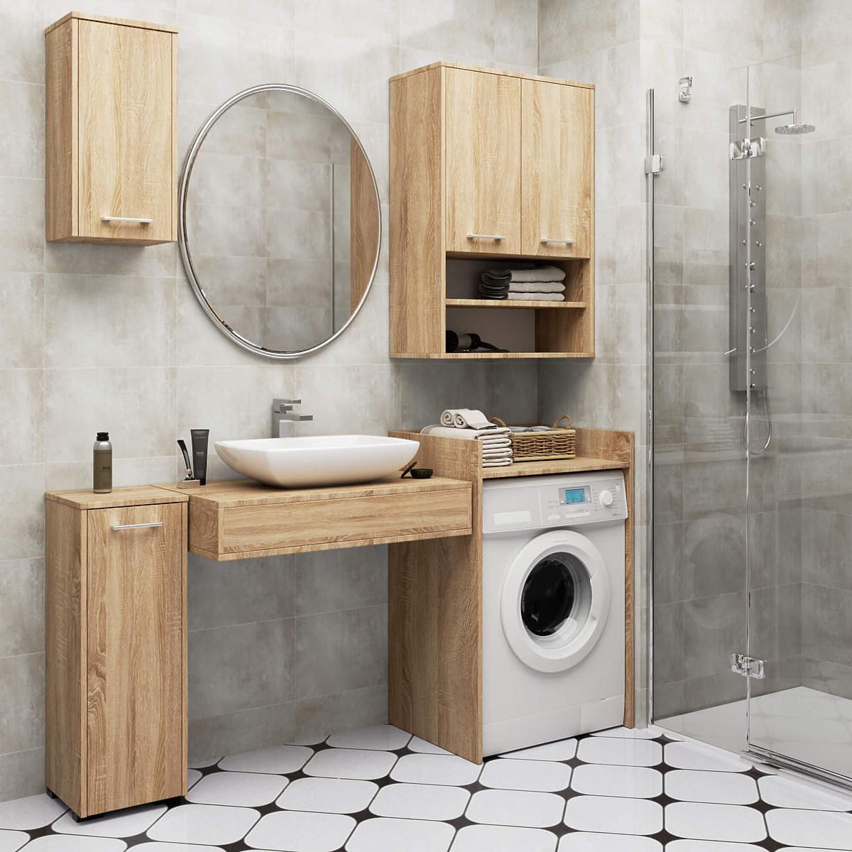 Sonoma tölgy mosógép takaró a fürdőszoba eleganciájáért. .. többet