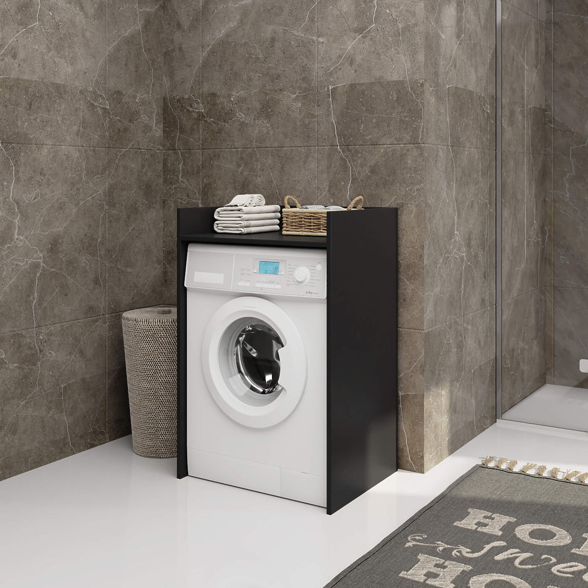 Ha azt szeretnénk, hogy fürdőszobánk kényelmesen és stílusosan legyen berendezve, érdemes szilárd és funkcionális bútorokat választani. Ilyen biztosan a mosógép fölötti szekrény. Ez a legjobb módja annak, hogy kihasználjuk a mosógép feletti teret, amely általában kihasználatlan marad. Ennek az oszlopnak az optimális méretei nagyszerű megoldást jelentenek a kis alapterületű fürdőszobák számára. Ergonomikus formája lehetővé teszi, hogy bármely helyiségben használható legyen. A fekete gyönyörű árnyalata elegáns megjelenést biztosít a fürdőszobának. A laminált lap, amelyből ez a szekrény készült, kiváló minőségű anyag. Biztosítja a bútor tartósságát és szilárdságát, valamint esztétikai megjelenésének megőrzését.