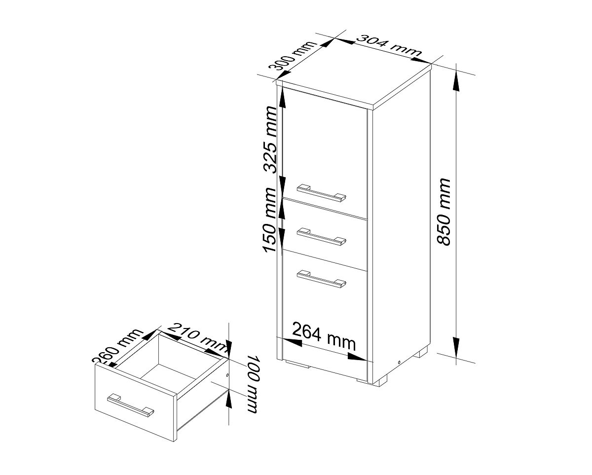 A fürdőszobában a magas páratartalom miatt a bútoroknak rendkívül tartósnak kell lenniük. A bemutatott FIN 2D 1SZ fürdőszobai szekrény-oszlop 16 mm vastag, kronospan cég által gyártott laminált lapból készült. Az élek ABS éllel vannak lezárva. Mindez karcállóvá, mechanikai sérülésekkel és nedvességgel szemben ellenállóvá teszi a szekrényt. A szekrény nagyon univerzális bútordarab. A készlet tartalmaz állítható függesztőket a felfüggesztéshez, valamint lábakat a padlóra helyezéshez. Az alsó polc zárt tér, ahol sikeresen tárolhatók törölközők. A felső ajtók belsejében egy polc található, amely lehetővé teszi a kozmetikumok rendezését. Az oszlop középső részét egy kihúzható fiók foglalja el. A bútor Tölgy Artisan színben készül, és az ajtók ezüst fogantyúkkal vannak díszítve.