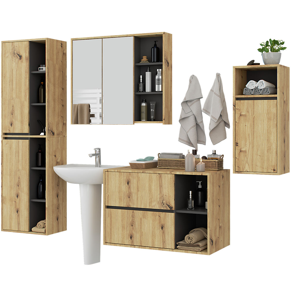Lukahome.hu » Fürdőszoba és WC / Fürdőszobai szettek / VAMI FÜGGŐ FÜRDŐSZOBAI BÚTOR SZETT ARTISAN TÖLGY / GRAFIT SZÜRKE