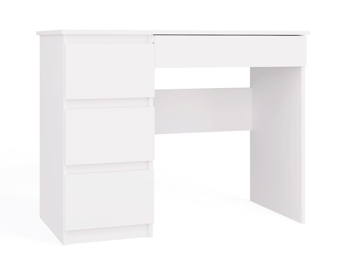 3 tágas magas fiók bal oldalon és egy alacsony fiók jobb oldalon az asztallap alatt