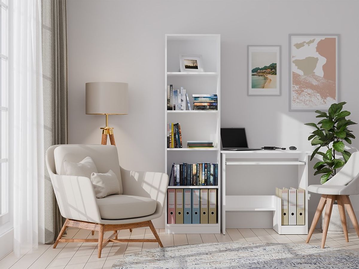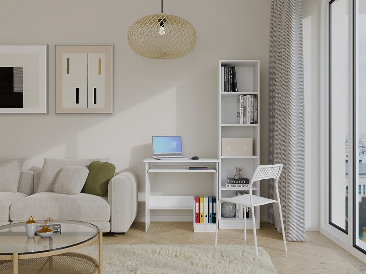 ROSA íróasztal kompakt és rendkívül funkcionális bútordarab, amely kiválóan illik kis terekbe - gyerekszobába, diákszobába vagy otthoni irodába. A minimalista dizájn és a matt fehér szín miatt az asztal tökéletesen illeszkedik a modern belső terekhez, és optikailag növeli a teret.