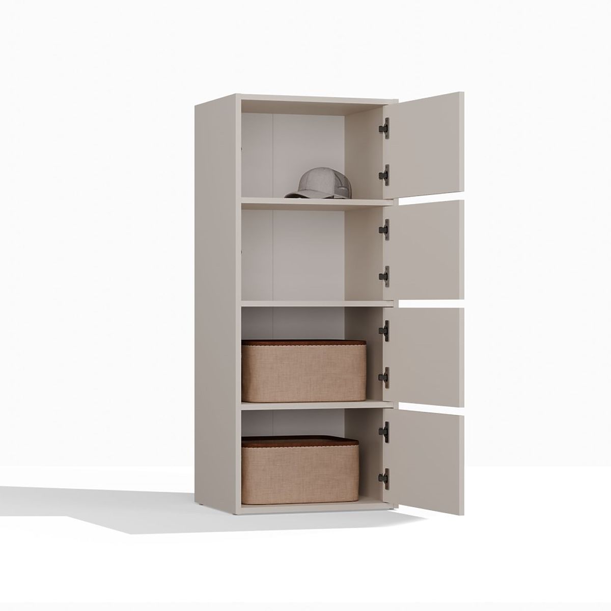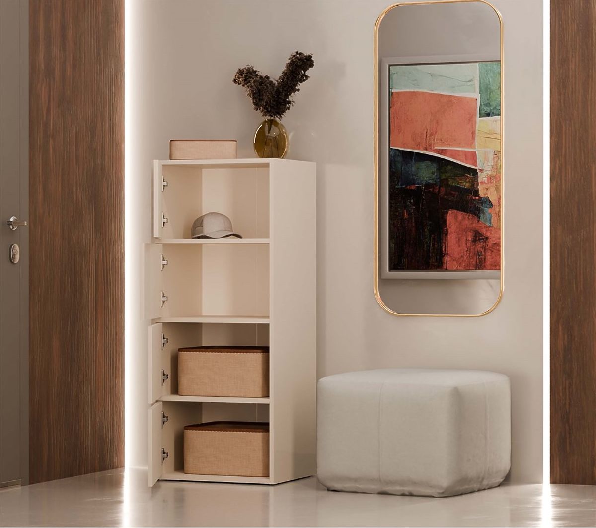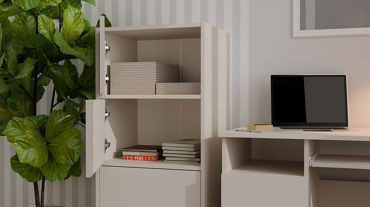 A sima ajtók mögött rejtett tágas polcok rengeteg tárolóhelyet biztosítanak, és megkönnyítik a rend fenntartását bármely térben.