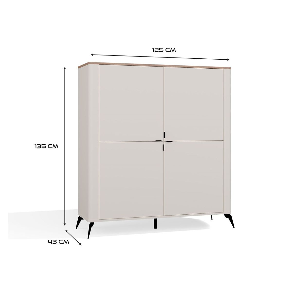CORDOBA 4D Komódia Kašmír Bézs Castello Tölgy Szekrény 4 Ajtó 8 Polc Nappali