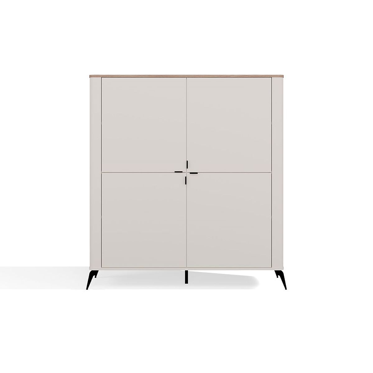 A modell négy csendes záródású ajtóval van felszerelve, amelyek mögött nyolc praktikus polc található – ideális könyvek, dokumentumok, textíliák vagy mindennapi kiegészítők tárolására.
