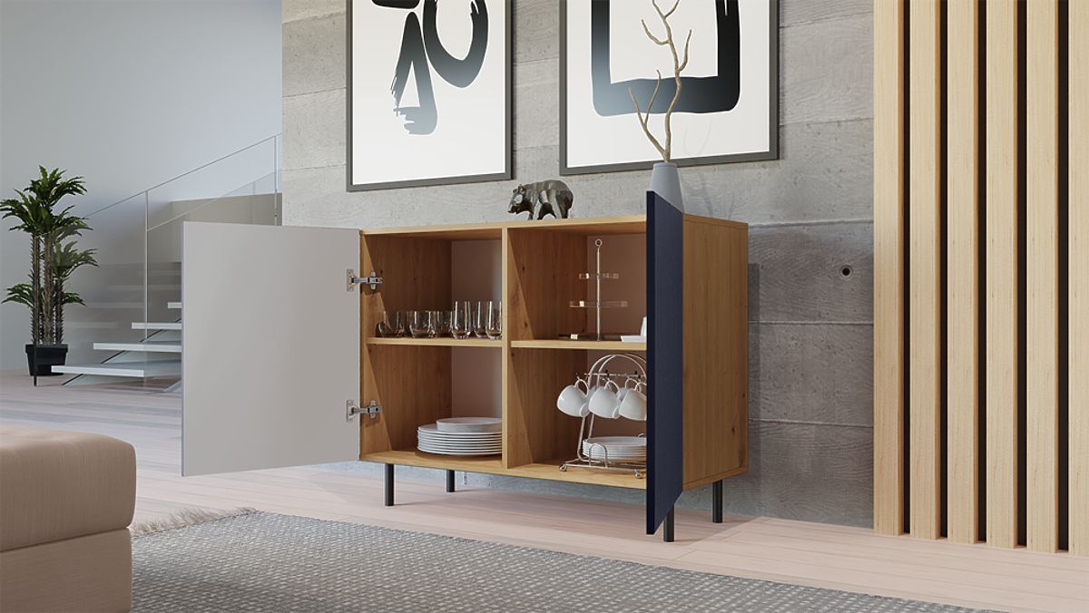A komód belseje polcokból áll, amelyek segítenek a dolgok rendezésében. Könnyebben megtalálja, amit keres.