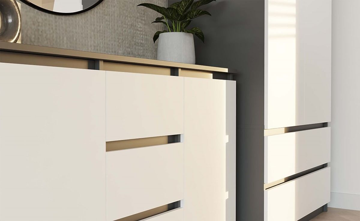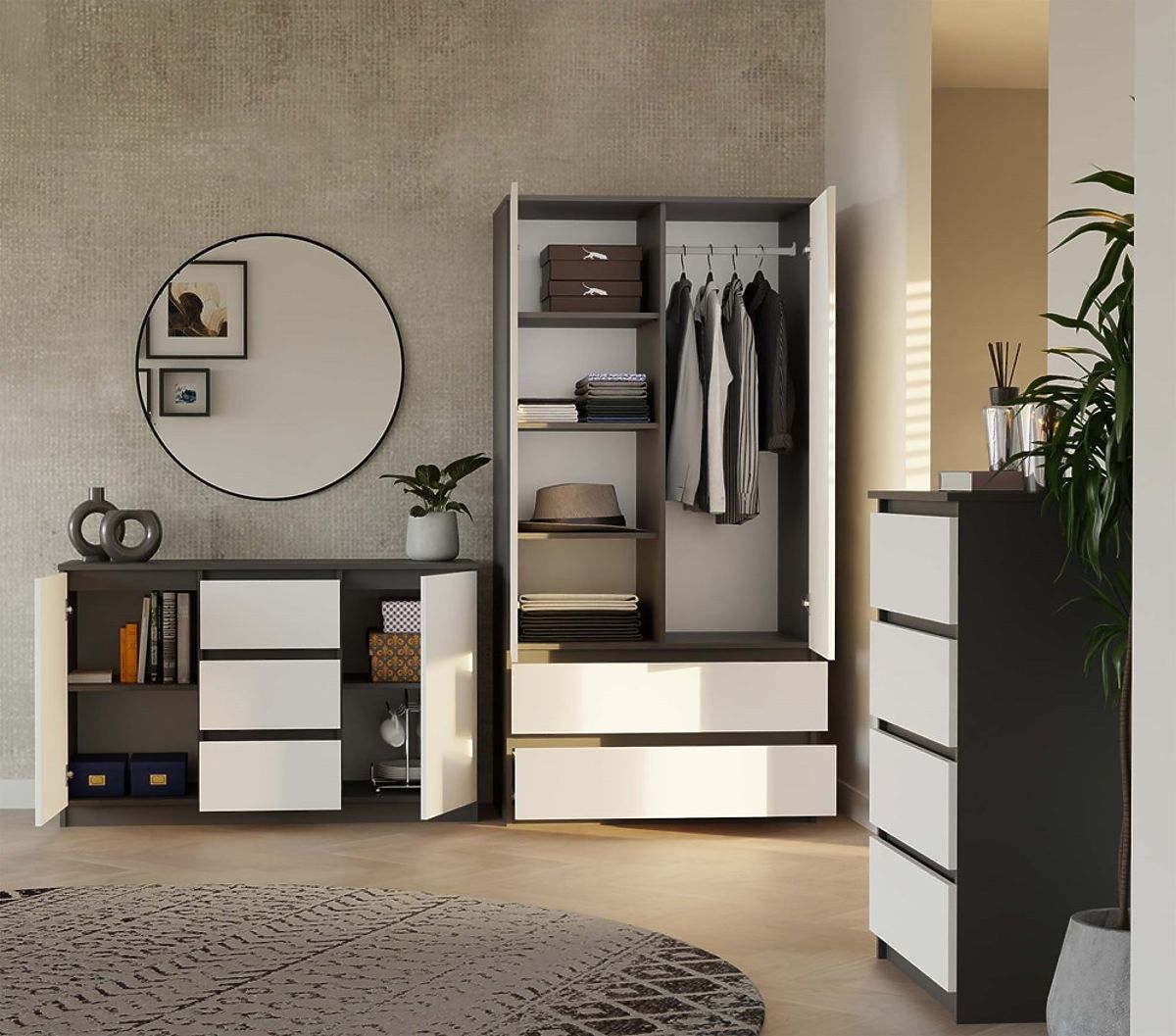 Modern komód antracit vázzal és fehér előlapokkal. .. többet