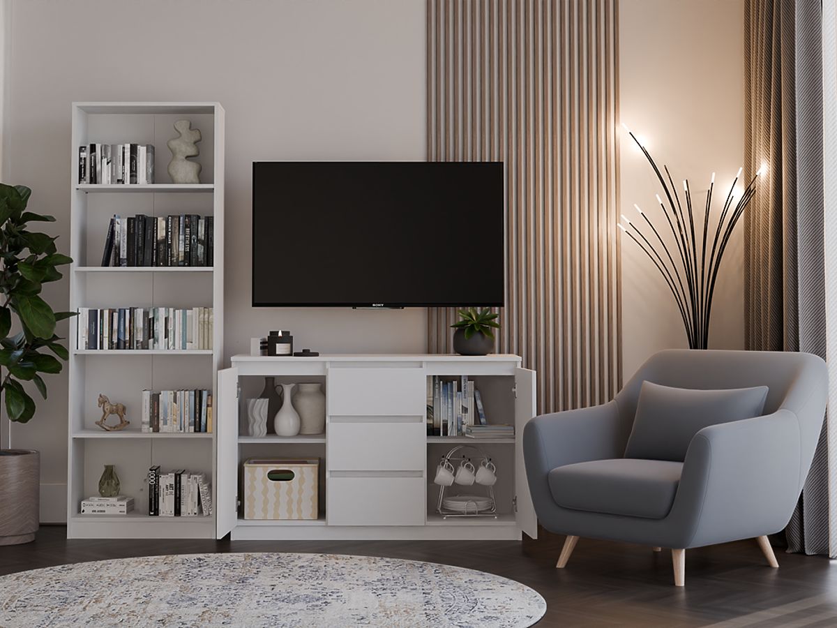 A modern 2D3S komód egy funkcionális és tágas bútordarab, amely berendezi hálószobáját, nappaliját vagy gyerekszobáját.