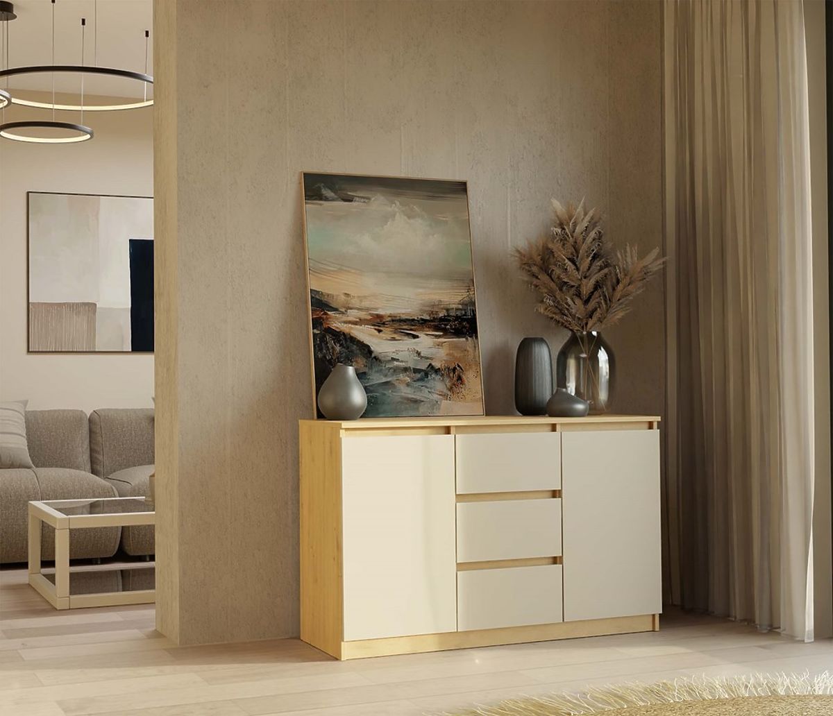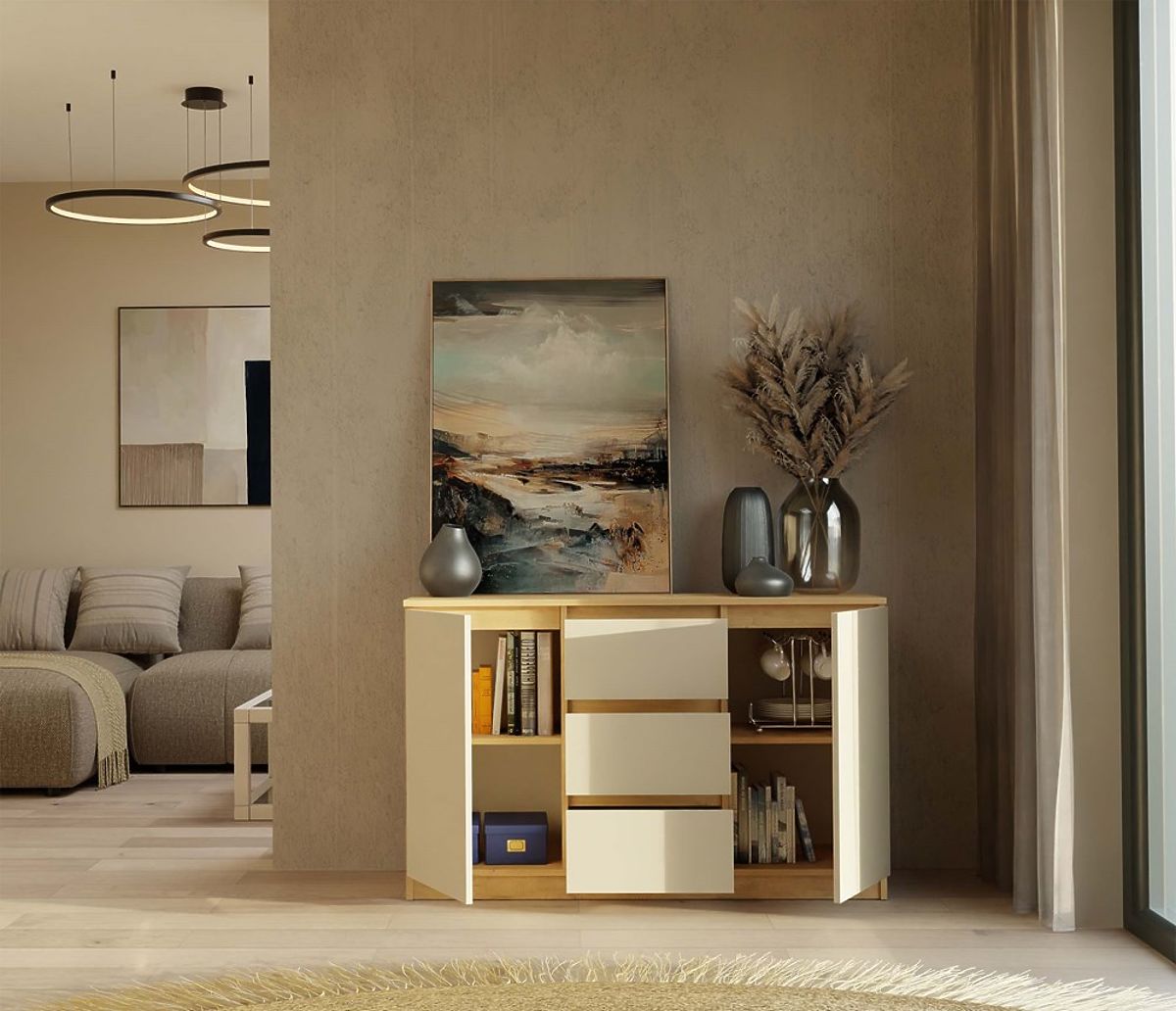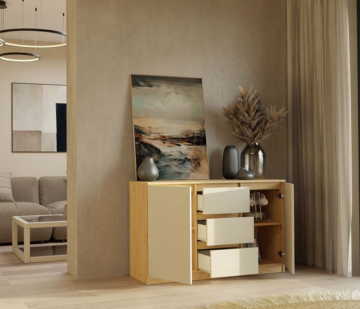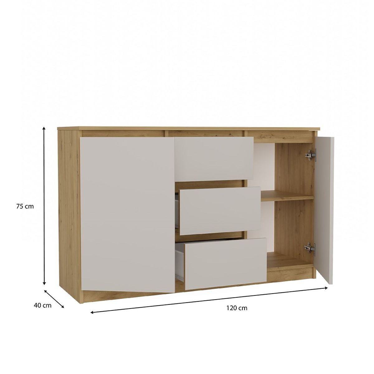 Modern komód 2 ajtóval és 3 fiókkal, Artisan Tölgy és Kasmír színekben. .. többet