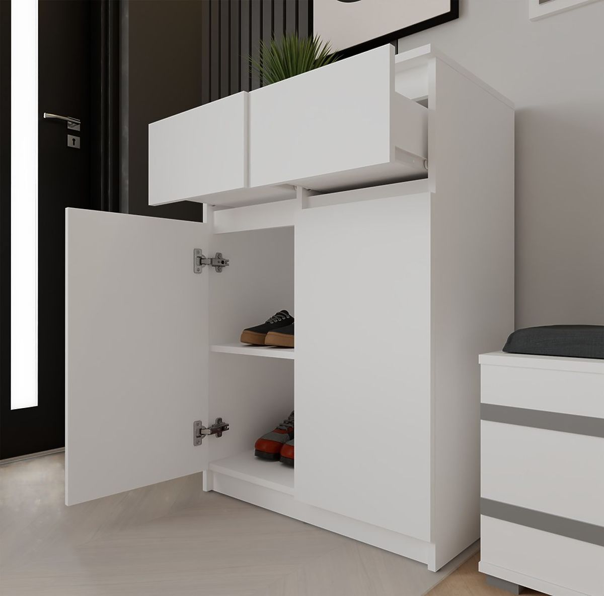 A 2DD2S komód fehér színben a funkcionalitás és a modern esztétika tökéletes kombinációja, ideális világos és tágas belső terekhez.