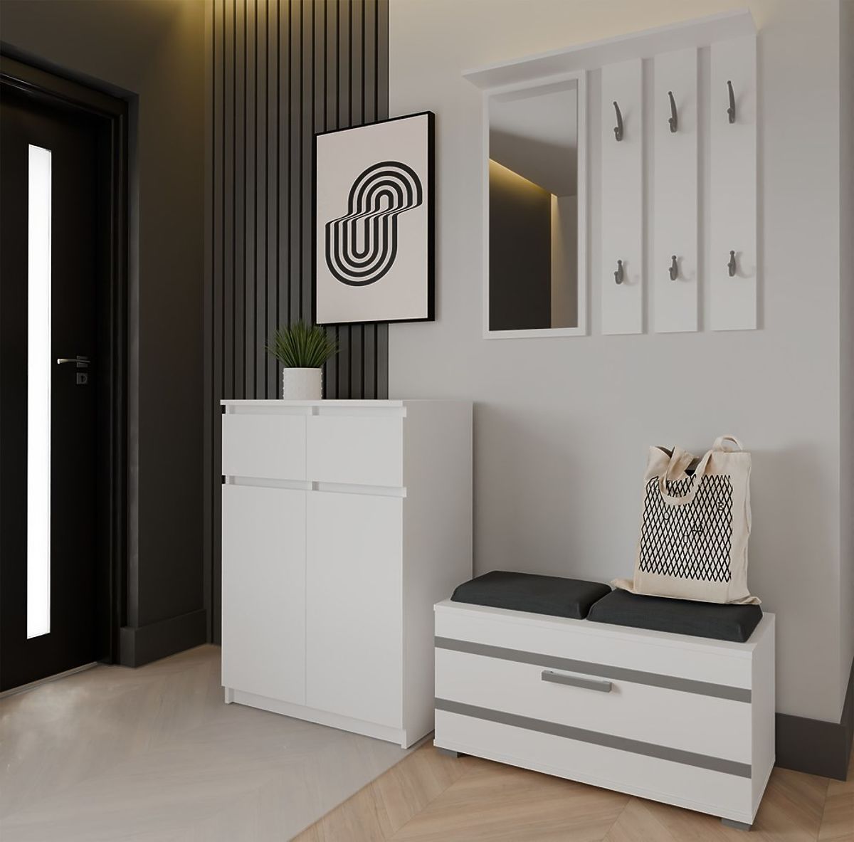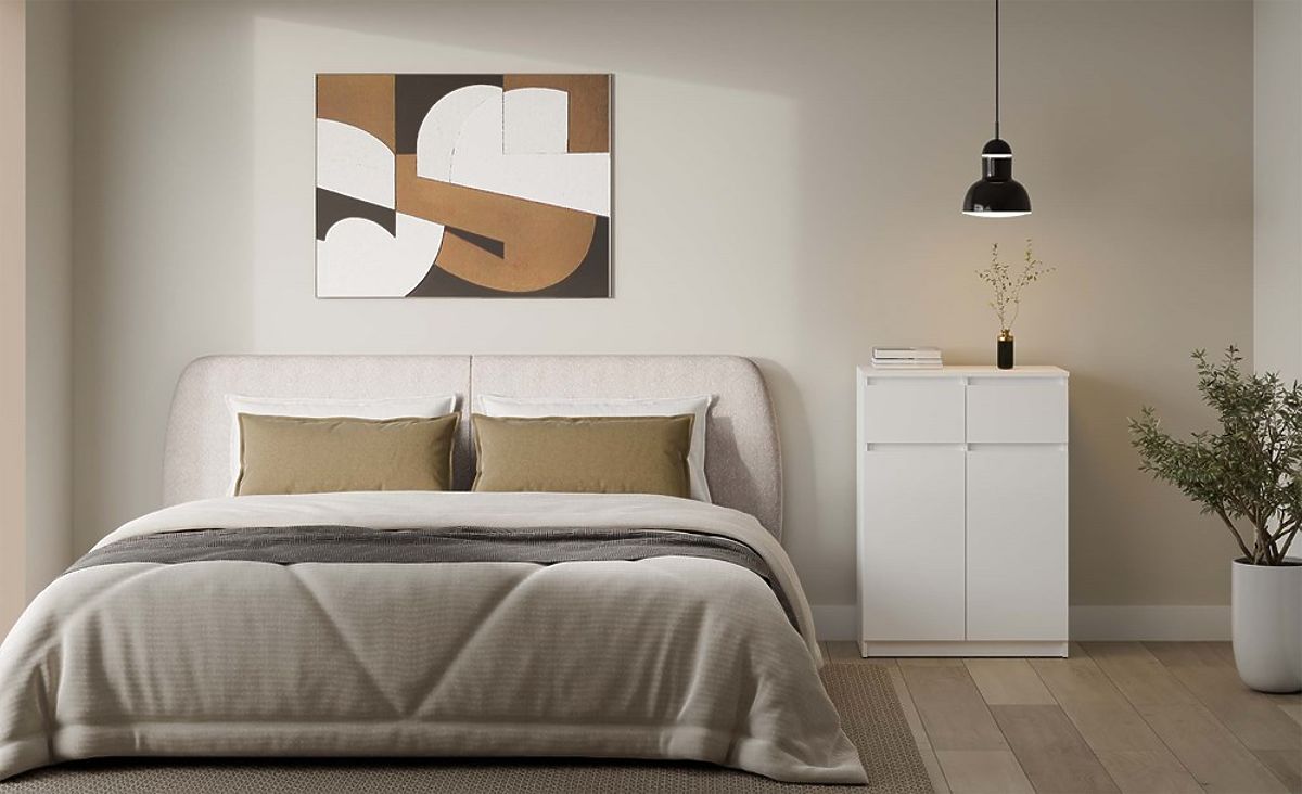 A 2DD2S komód klasszikus fehér színben elegáns és funkcionális bútor, amely kiválóan alkalmas hálószobába, nappaliba, előszobába vagy gyerekszobába. Minimalista dizájnjának és univerzális színvilágának köszönhetően különböző belső stílusokhoz illik – a modern, skandináv vagy klasszikus stílusokhoz egyaránt.