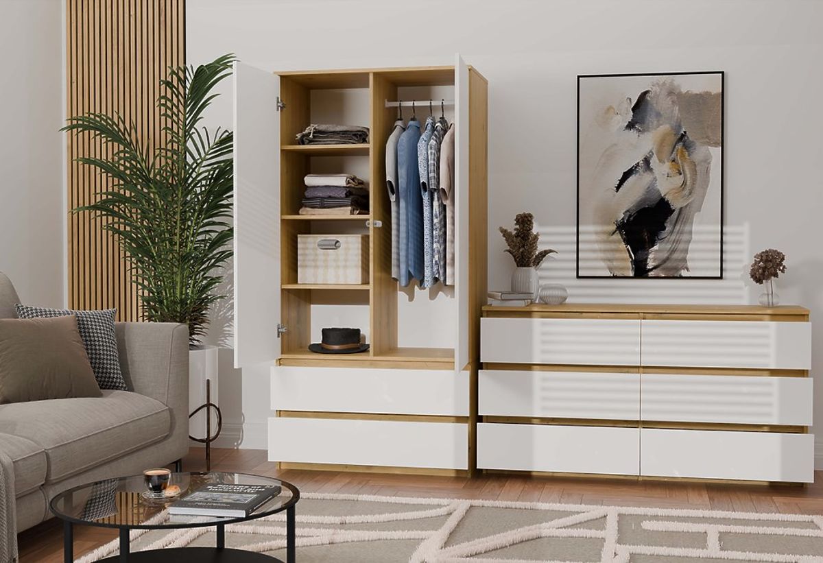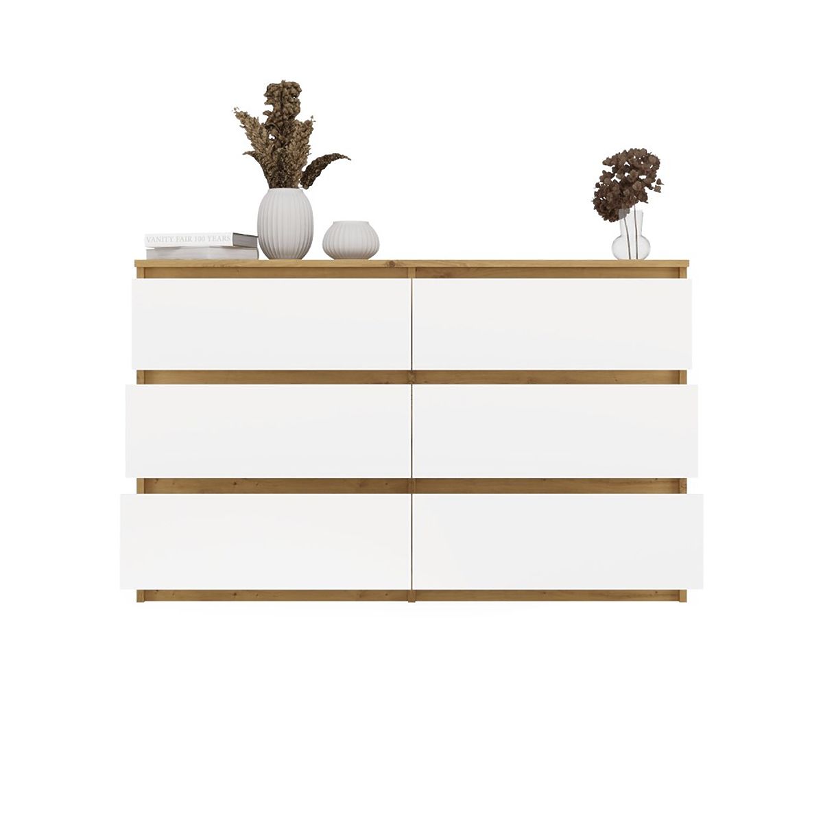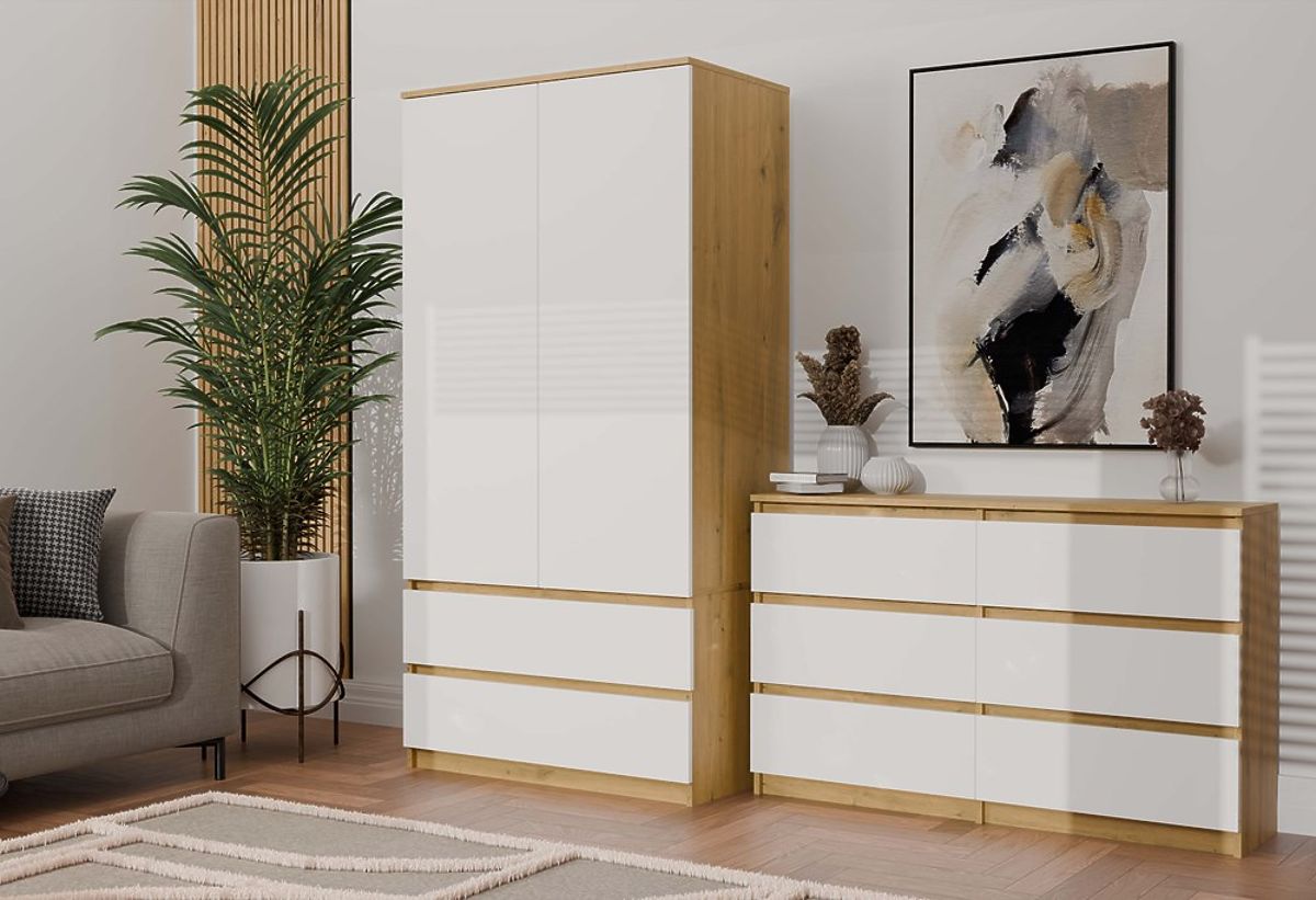 Tágas és stílusos komód 6 fiókkal, Artisan Tölgy és fehér színekben. .. többet