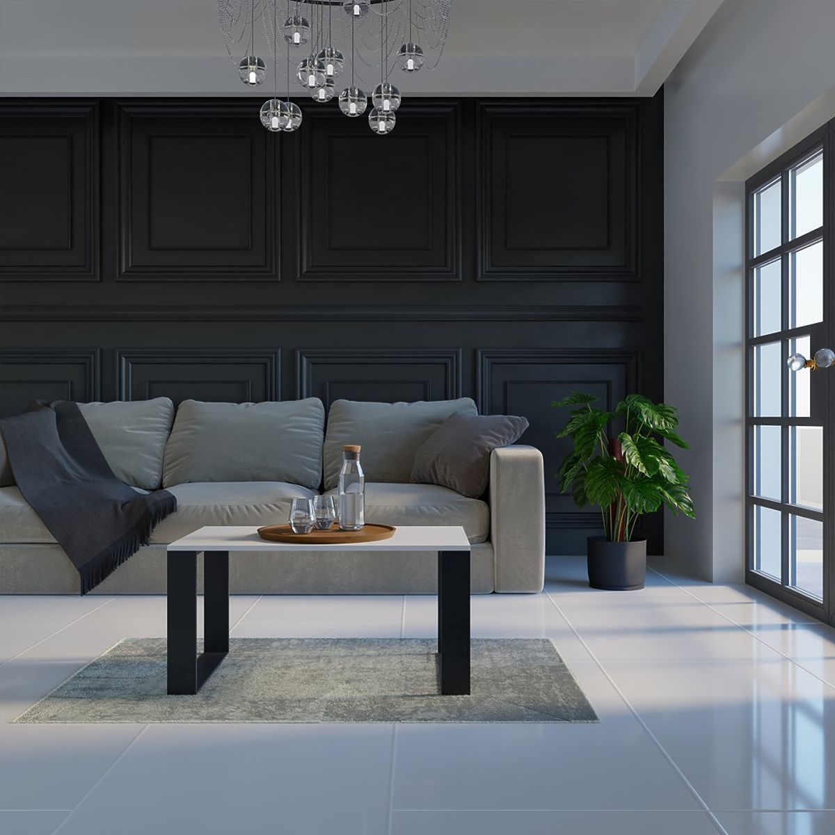 Modern fehér-fekete konferenciaasztal a nappaliba. .. többet