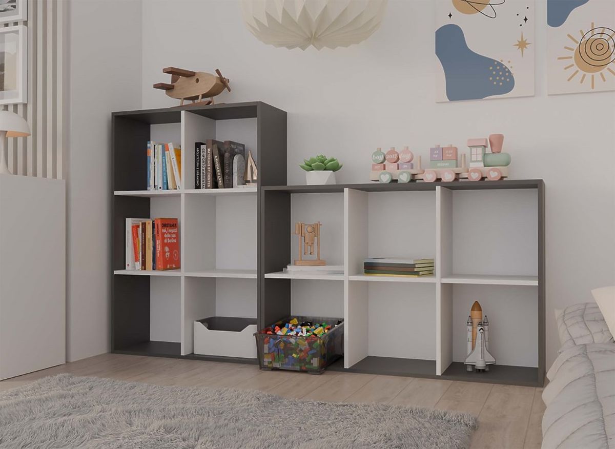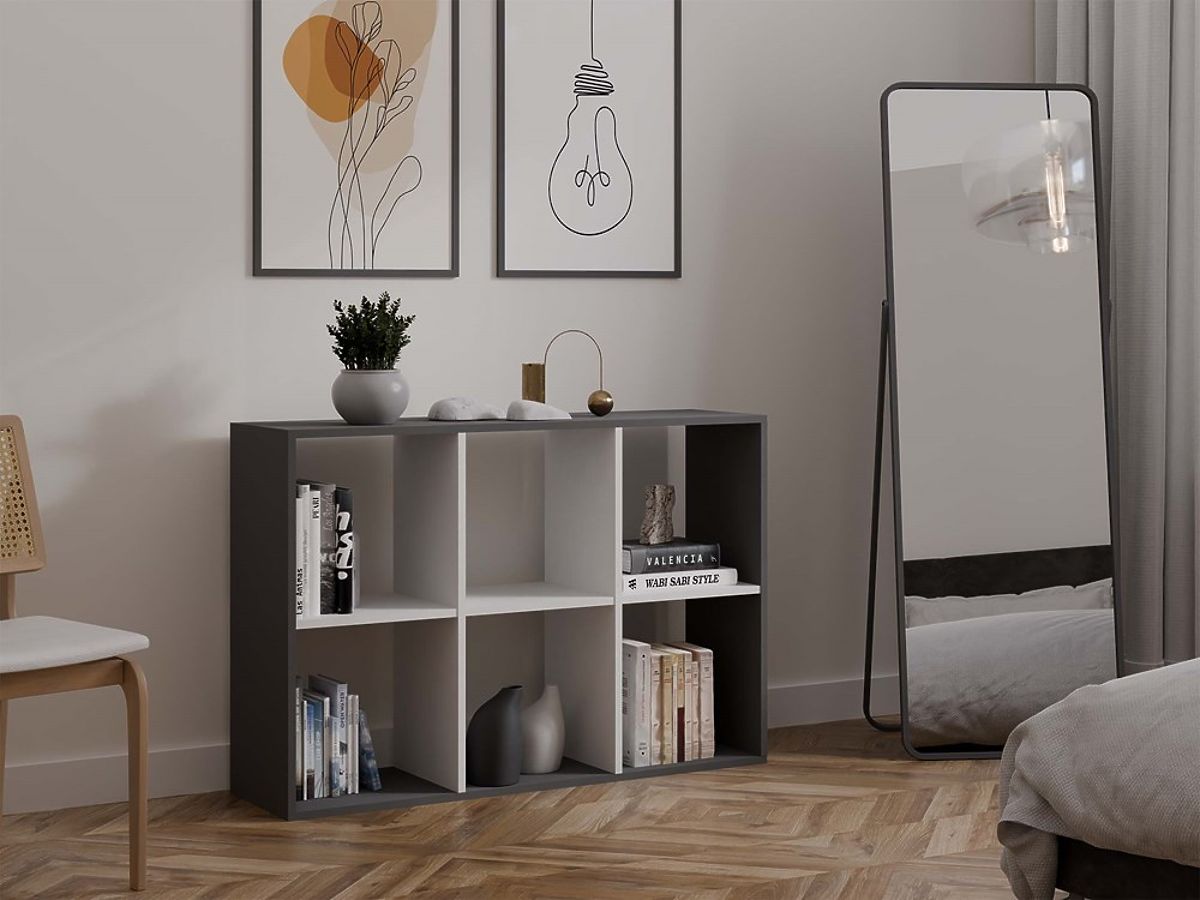 Modern dizájnú, 6 polcos antracit-fehér tároló polc. .. többet