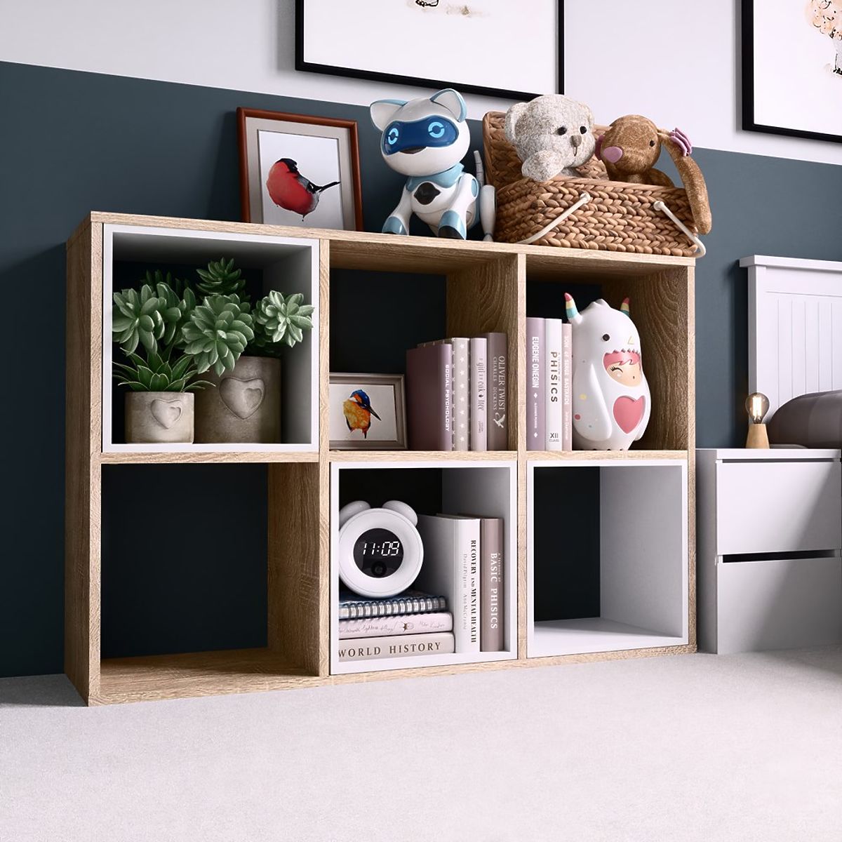 Sonoma tölgy színű, modern könyv- és játékpolc. .. többet