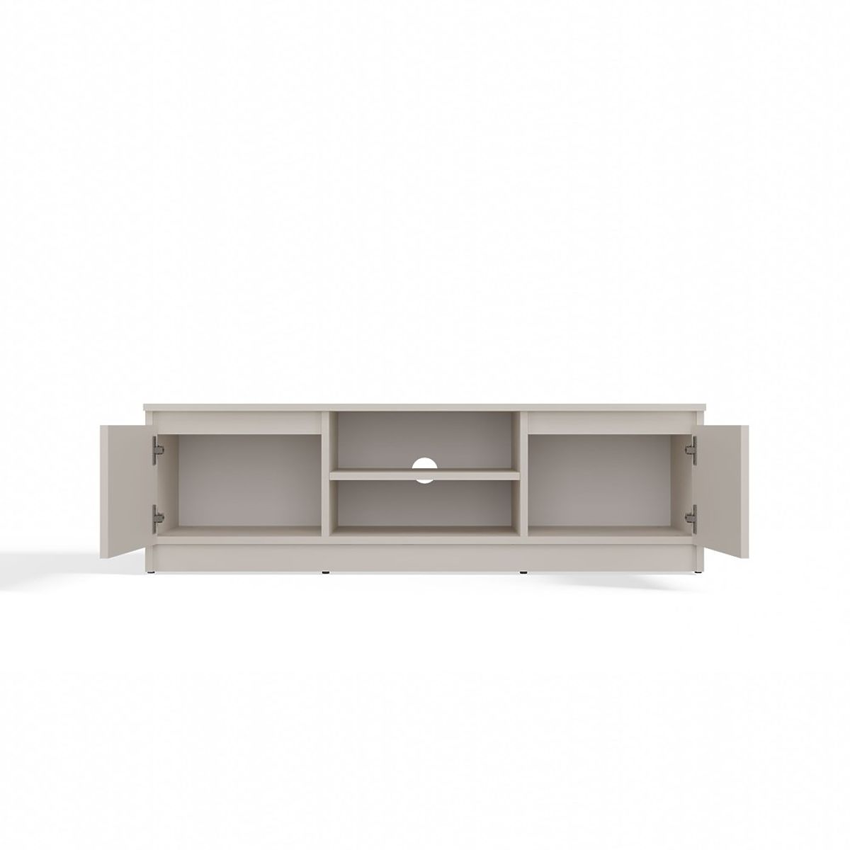 Nyitott polc, amely lehetővé teszi a TV eszközök kényelmes elhelyezését, és a hátulján lévő nyílás megkönnyíti a kábelek diszkrét elvezetését.