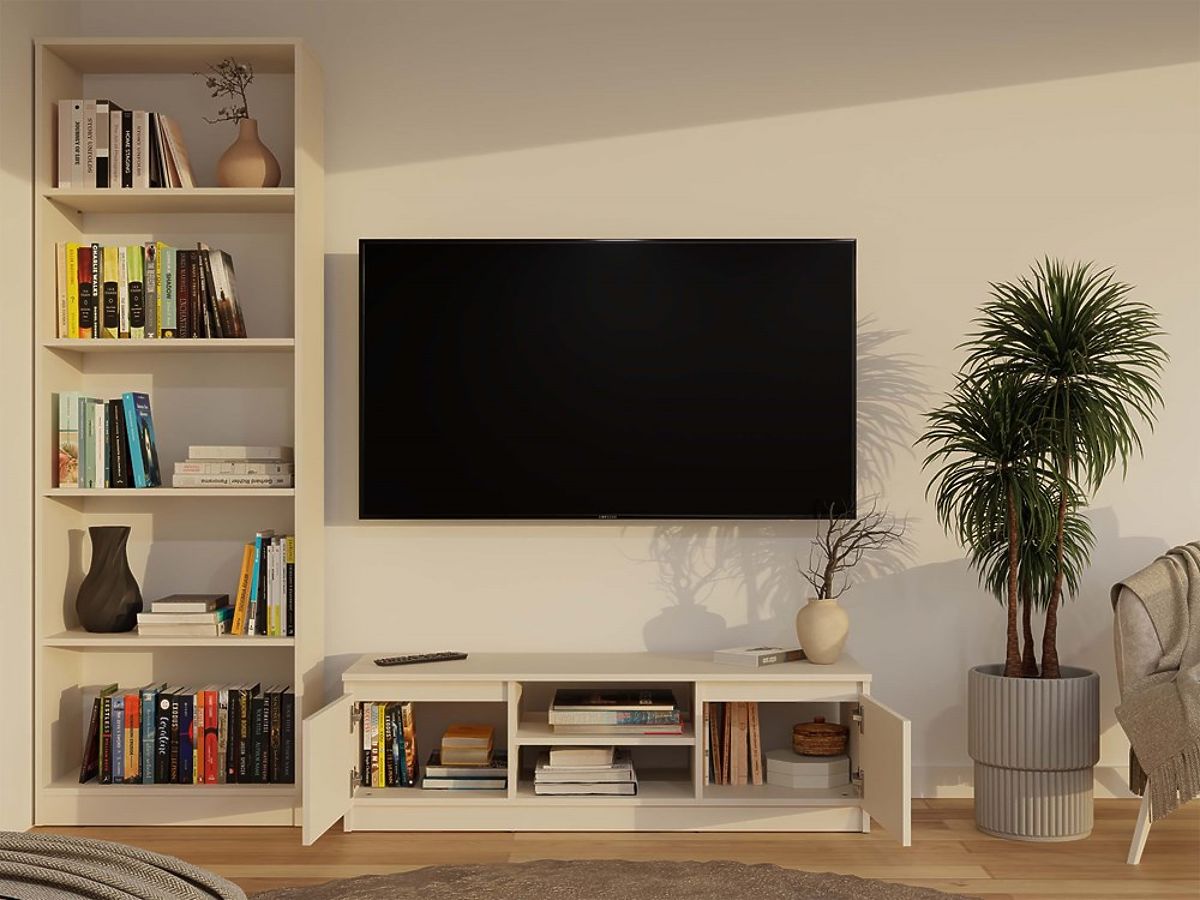 Praktikus lap, amely ideális hely a televízió és dekorációk számára.