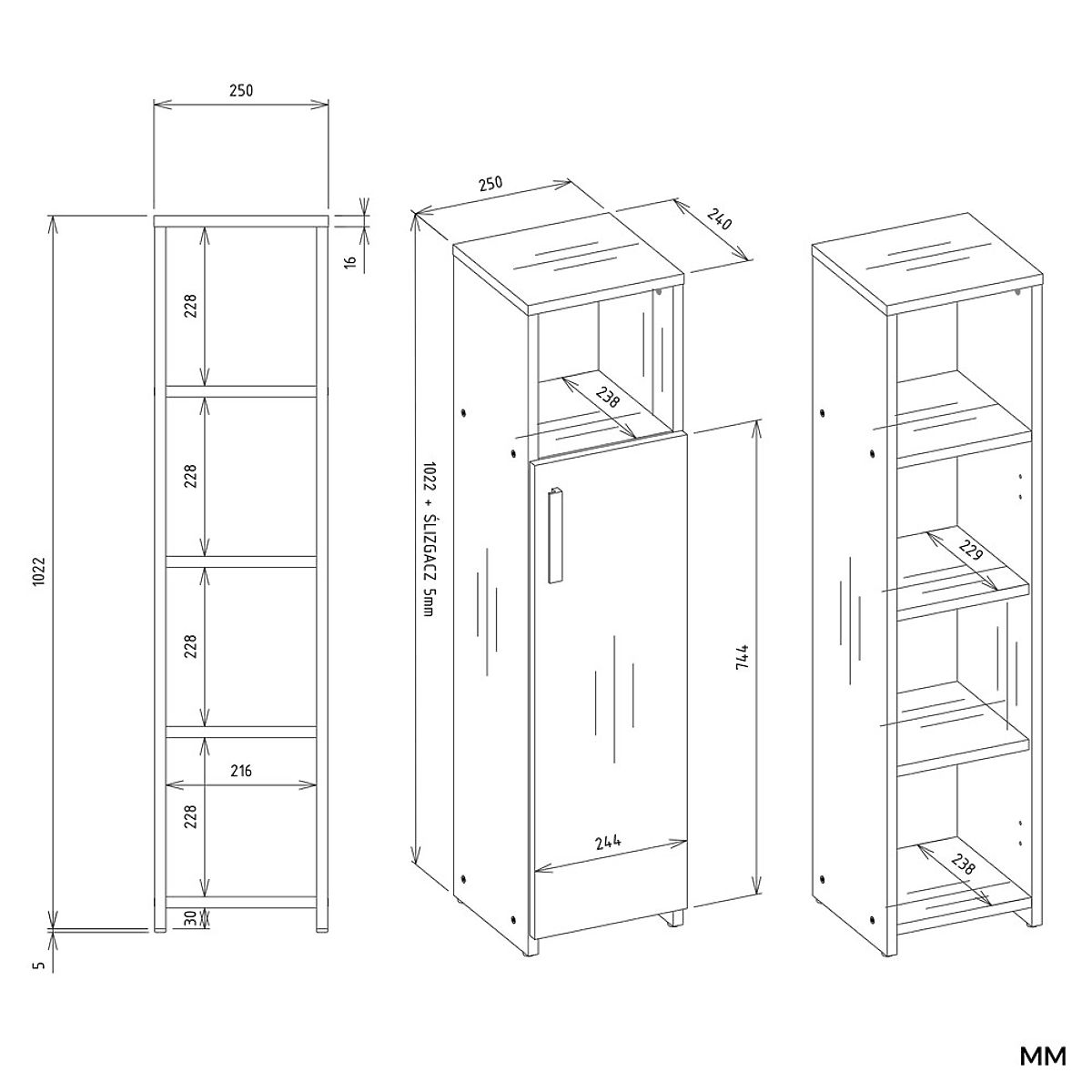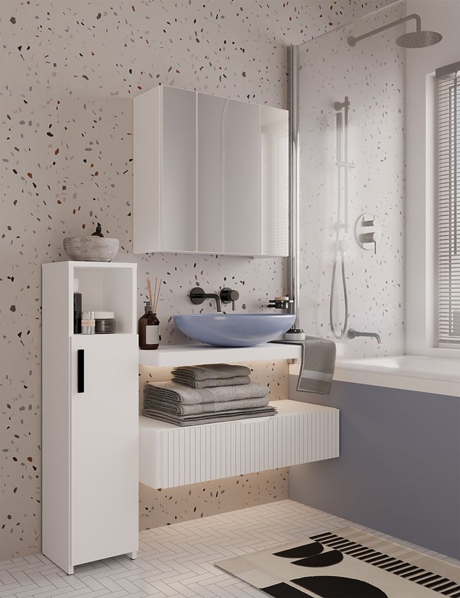 ALVO 1D FEHÉR FÜRDŐSZOBAI SZEKRÉNY 4 POLC 1 AJTÓ FÜRDŐSZOBAI SZEKRÉNY