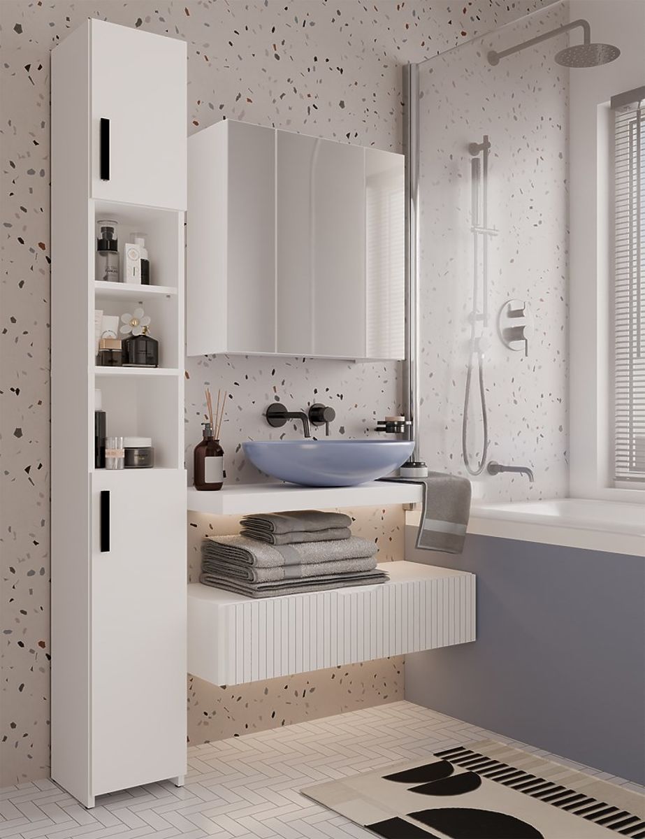 A minimalista és funkcionális ALVO 2D fürdőszobai szekrény kiváló megoldás kozmetikumok, törölközők és tisztítószerek tárolására bármely fürdőszobában. Kompakt formája és semleges színe biztosítja, hogy modern és klasszikus belső terekbe egyaránt illeszkedjen.