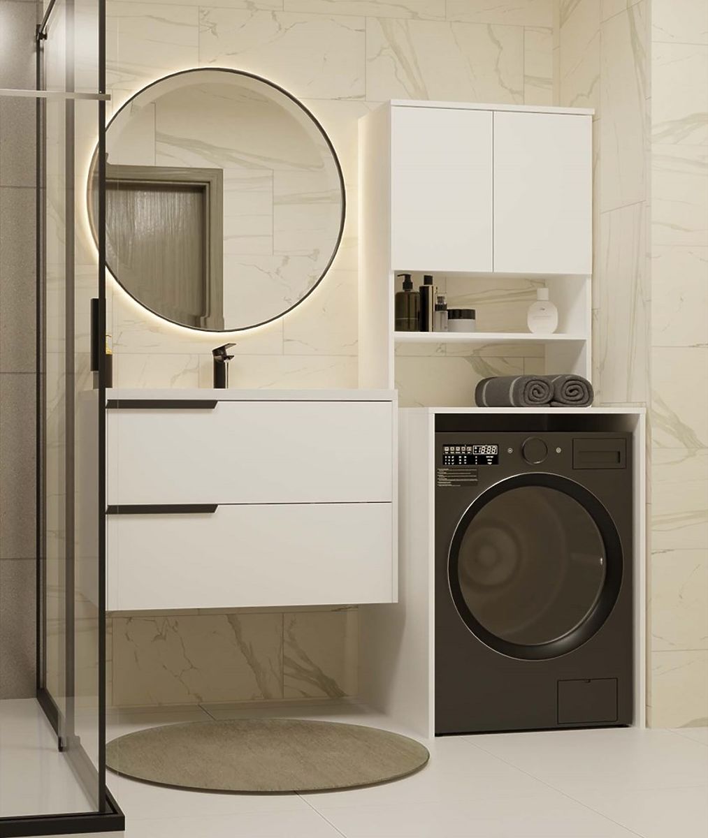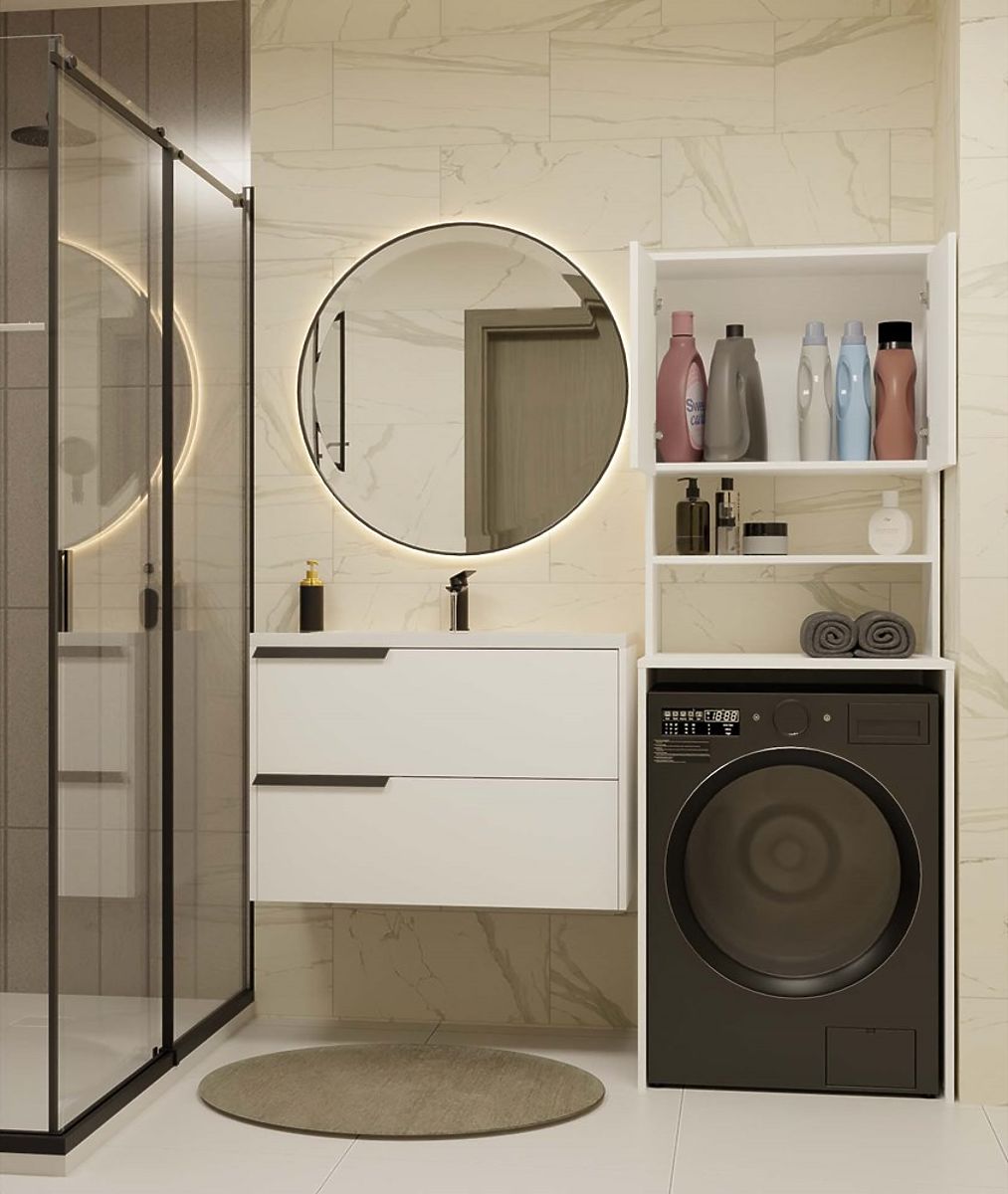 Fürdőszobai polc a mosógép fölé, maximális helykihasználás. .. többet