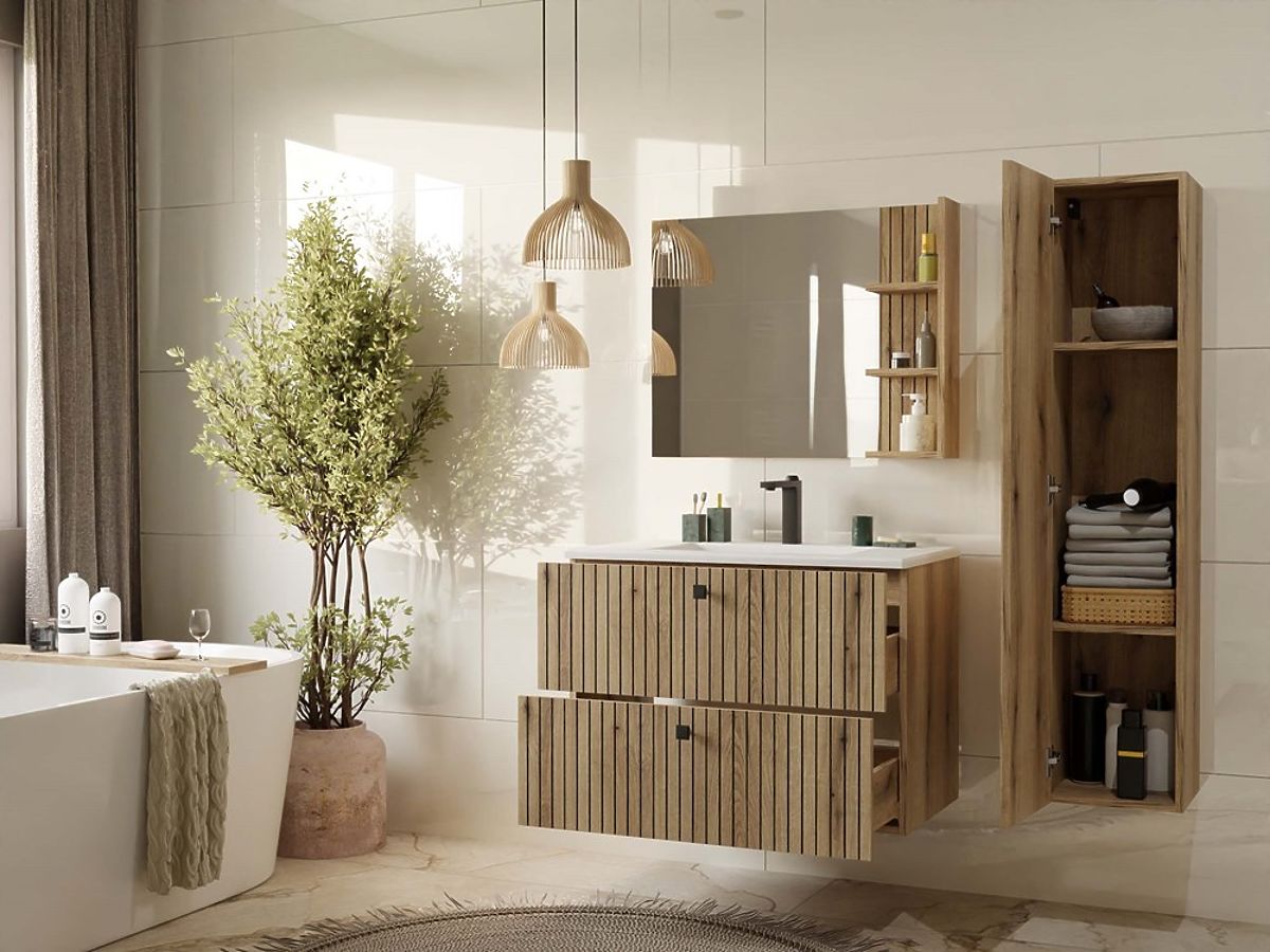 TIGO 80 2S FÜRDŐSZOBAI MOSDÓSZEKRÉNY EVOKE TÖLGY BARÁZDAZOTT ELŐLAPPAL + MOSDÓVAL