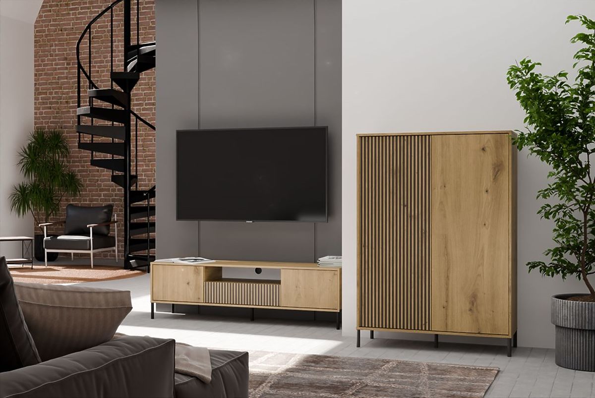 Lukafurniture.hu » bútor / Tv asztalok és komódok / RTV SZEKRÉNY KAMARO 160 TÖLGY ARTISAN Bordázott + Klasszikus Elülső Panel
