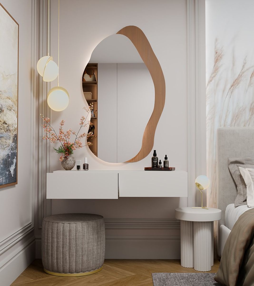 Praktikus és stílusos megoldást keres kozmetikumok vagy kiegészítők tárolására? A kašmírszínű MIKA függő fésülködőasztal minimalista dizájnt ötvöz a funkcionalitással – tökéletesen illik a hálószobába, gardróbba vagy fürdőszobába.