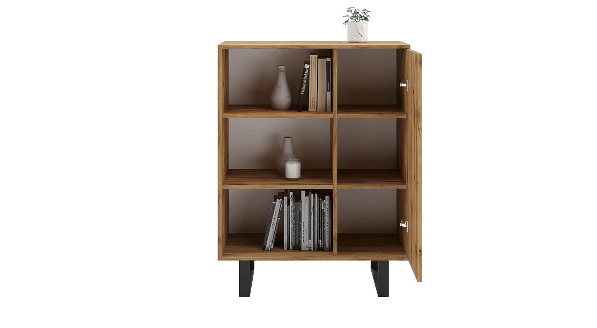 A FONDI szekrény rendkívül funkcionális bútordarab a nappalijába, amely ötvözi az egyszerűséget és a loft stílus által inspirált figyelemfelkeltő megjelenést. A minimalista formák és a nyers anyagok, mint a fém elemek és a fa, egyedi atmoszférát és karaktert hoznak a belső térbe. Ideális megoldás azok számára, akik értékelik a praktikusságot és a modern designt egyben. A FONDI szekrény funkcionális és esztétikus, tárolóhelyet kínál és lehetőséget ad kedvenc dekorációk kiállítására.