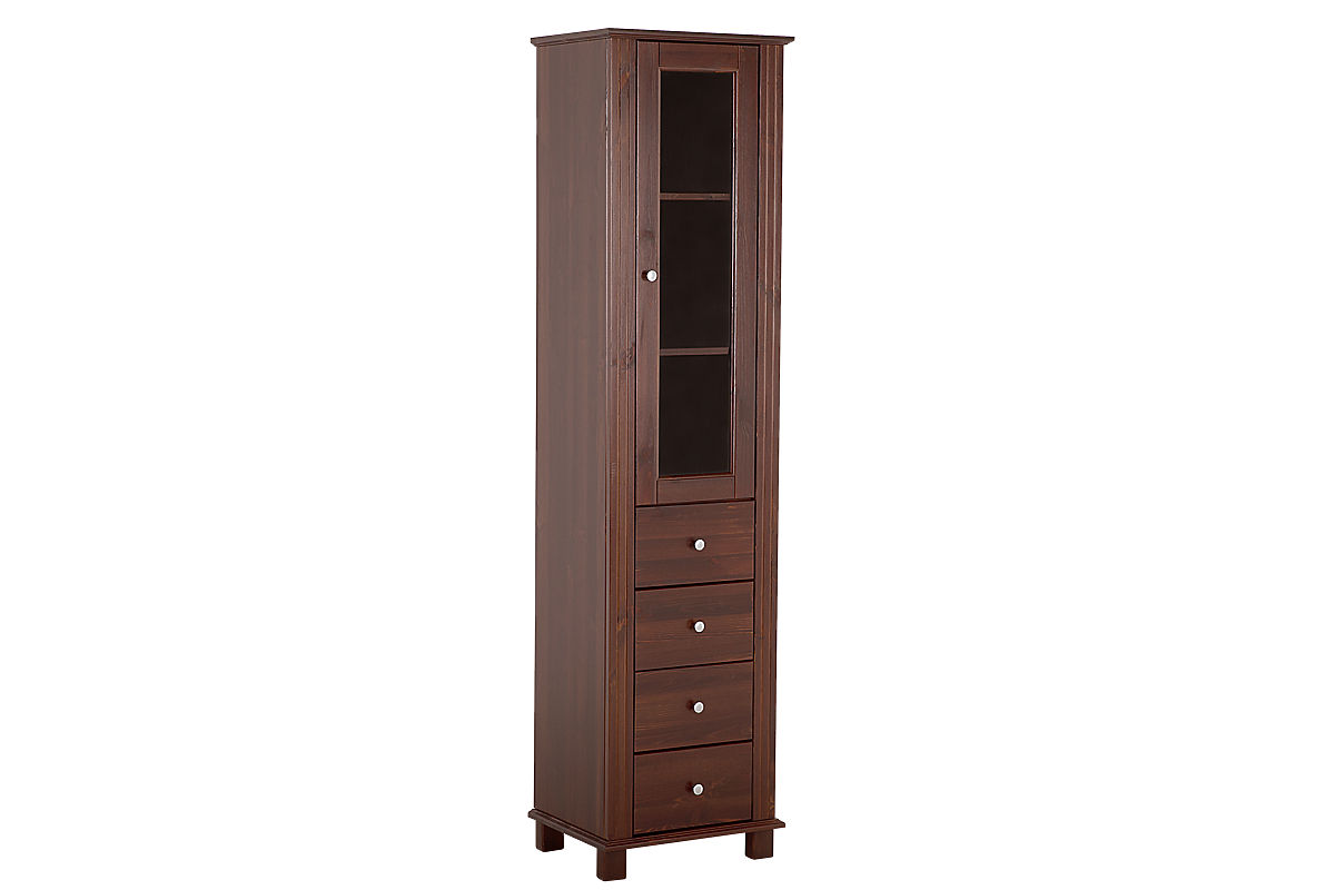 Magas szekrény 1 ajtóval és 4 fiókkal, természetes fa anyagból. .. többet