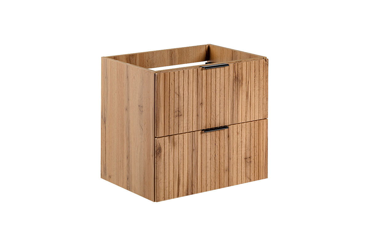 A 60 cm-es mosdó alatti szekrény két fiókkal az Adel Oak kollekcióból eleganciát és funkcionalitást ötvöz. Klasszikus arányokkal és egyedi bordázott előlapokkal rendelkezik. Három színben kapható fogantyúk - arany fényes, króm fényes és fekete matt - stílusos megjelenést kölcsönöznek neki.