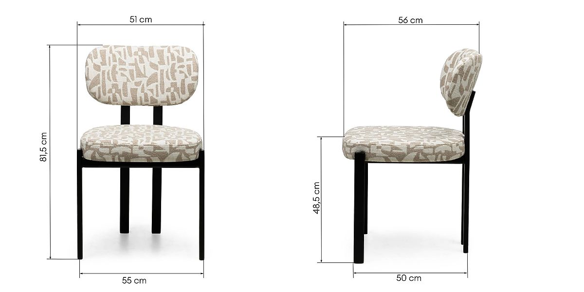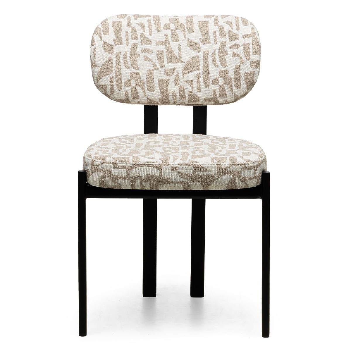 A kárpitozott Flare szék a modern dizájn és kényelem kombinációja, amely karaktert ad bármely belső térnek. A geometrikus, bézs-krém mintázatú szövet és a fekete fém lábak elegáns és egyben feltűnő megjelenést kölcsönöznek, ideális a modern és eklektikus elrendezésekhez. A formázott háttámla és a habbal töltött ülés magas kényelmet biztosít, amit a legigényesebbek is értékelni fognak. A Flare kiváló választás azok számára, akik stílusos és kényelmes megoldást keresnek a terükbe.