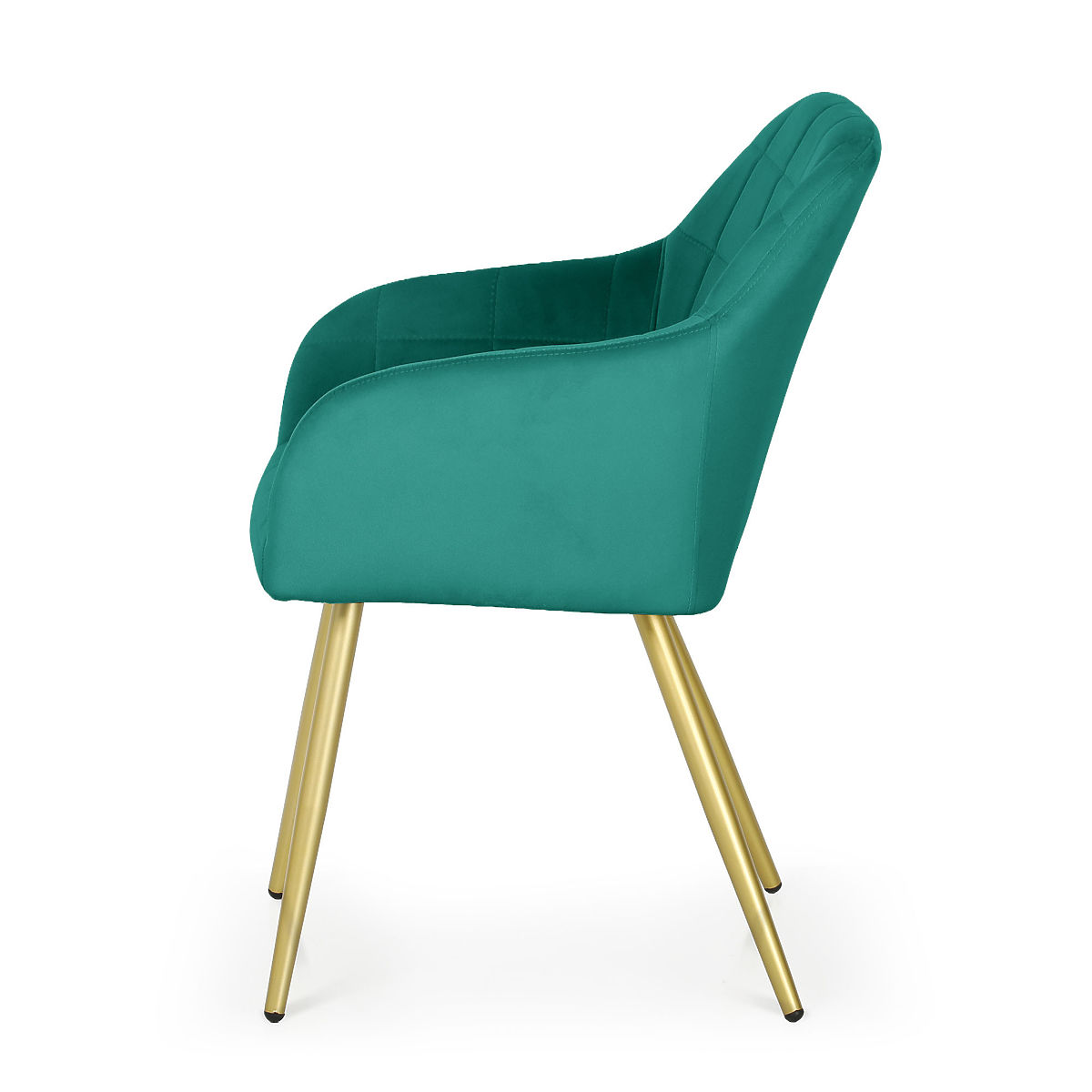 Kárpitozott étkezőszék palackzöld színben, arany lábakkal. .. többet