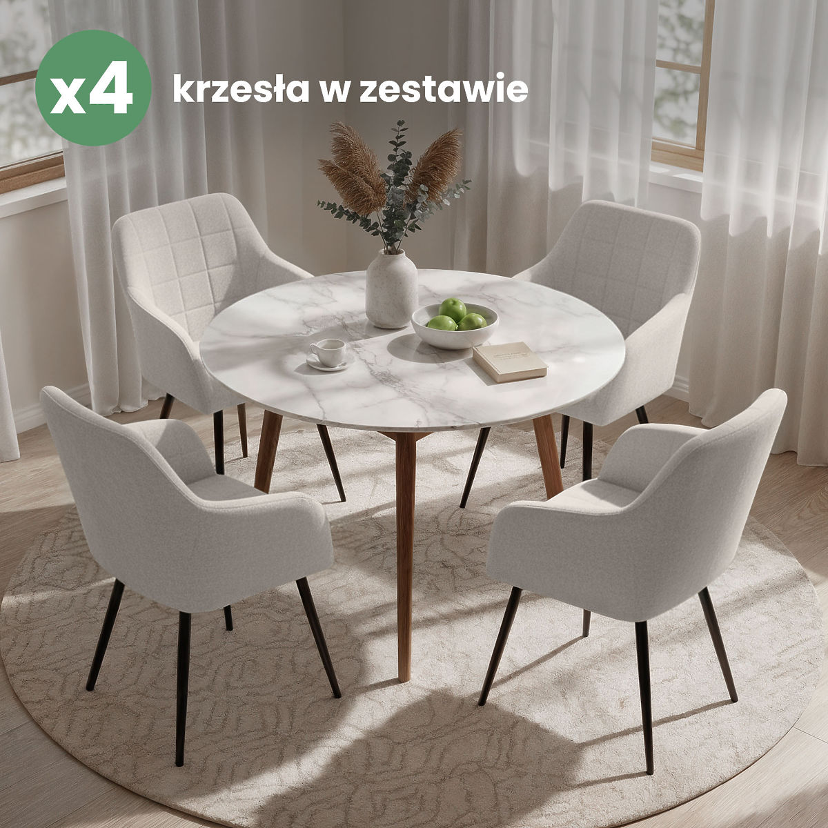 A kárpitozott székek esztétikus megjelenést ötvöznek a használati kényelemmel, és jól illeszkednek különböző belső stílusokhoz. Univerzális formájuk alkalmassá teszi őket étkezőkbe, nappalikba vagy irodai terekbe. Két anyagváltozatban érhetők el – Lumos szövet vagy velúr.