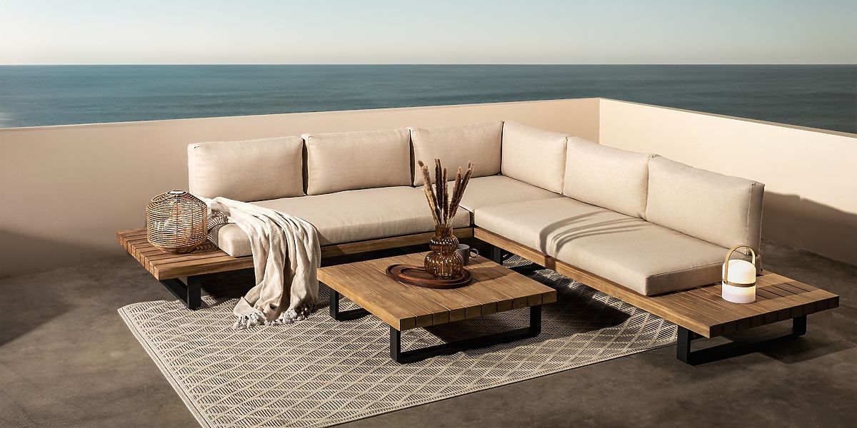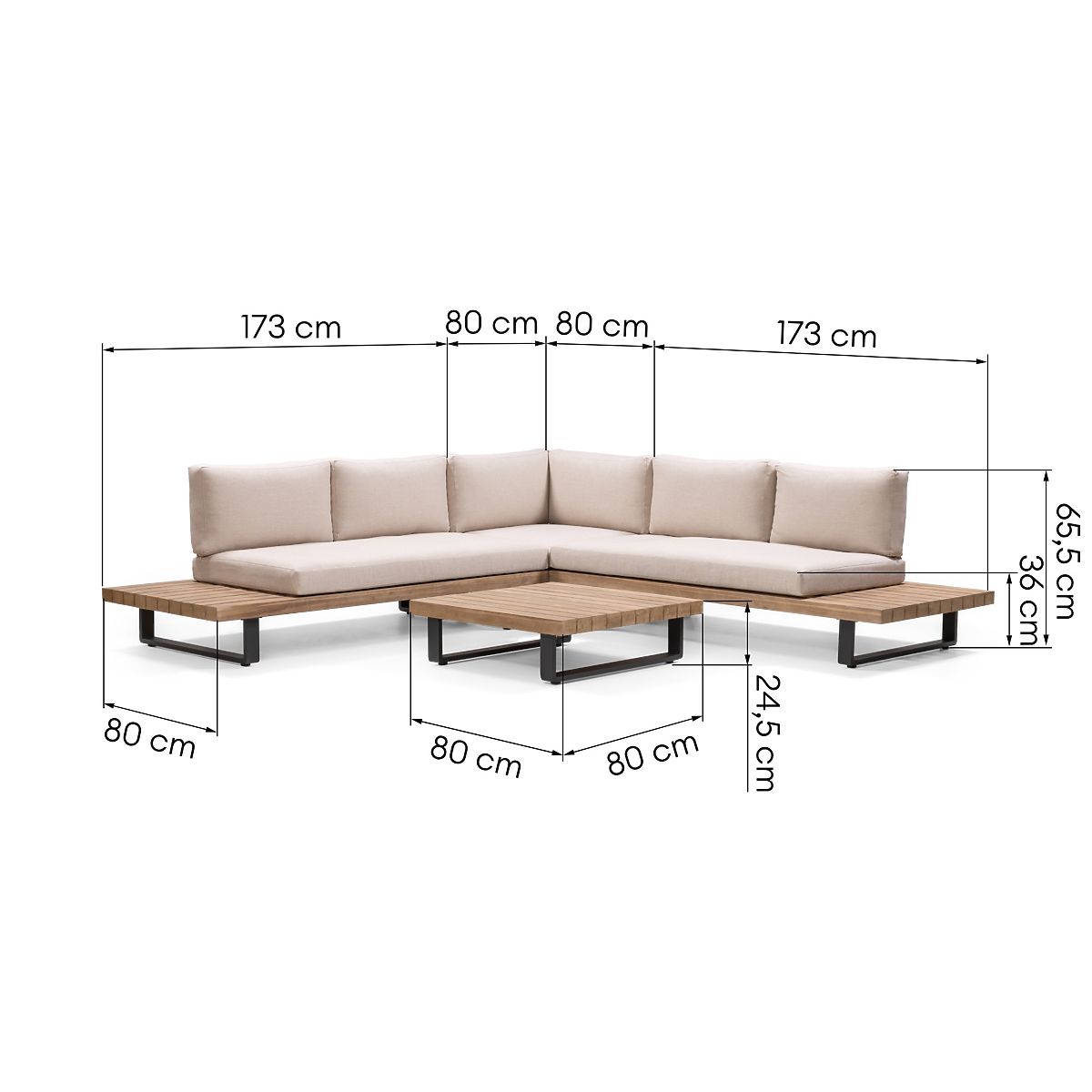 Borgo kerti sarokkanapé asztallal, FSC akácfa, teak megjelenés, bézs