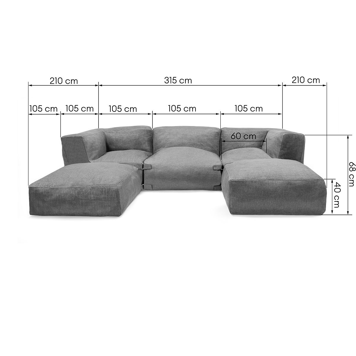 Öt elemből álló moduláris kerti sarokkanapé szürke huzattal. .. többet