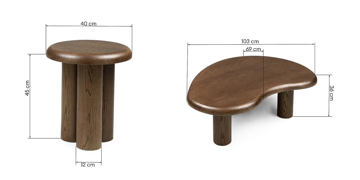 Lukahome.hu » Asztalok és dohányzóasztalok / Dohányzóasztalok / Sirocco asztalkészlet, sötét tölgy, lekerekített formák