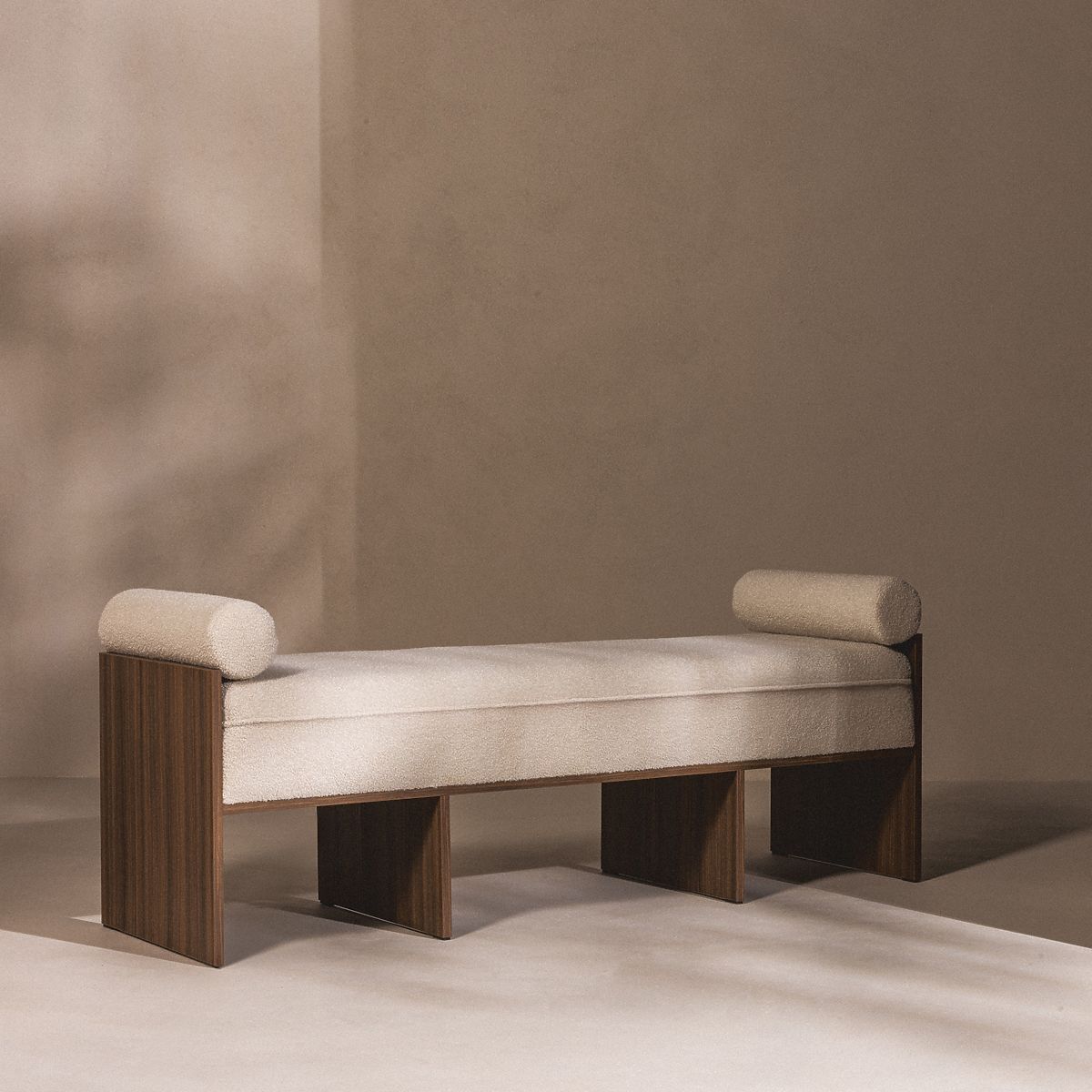 Lukahome.hu » Fotelek és ülőhelyek / Pad / Kárpitozott Loppo pad világos bézs, boucle, Wisconsin dió