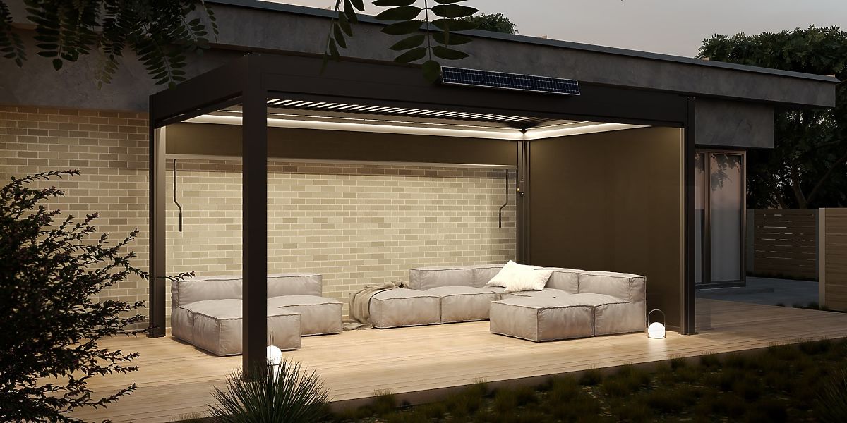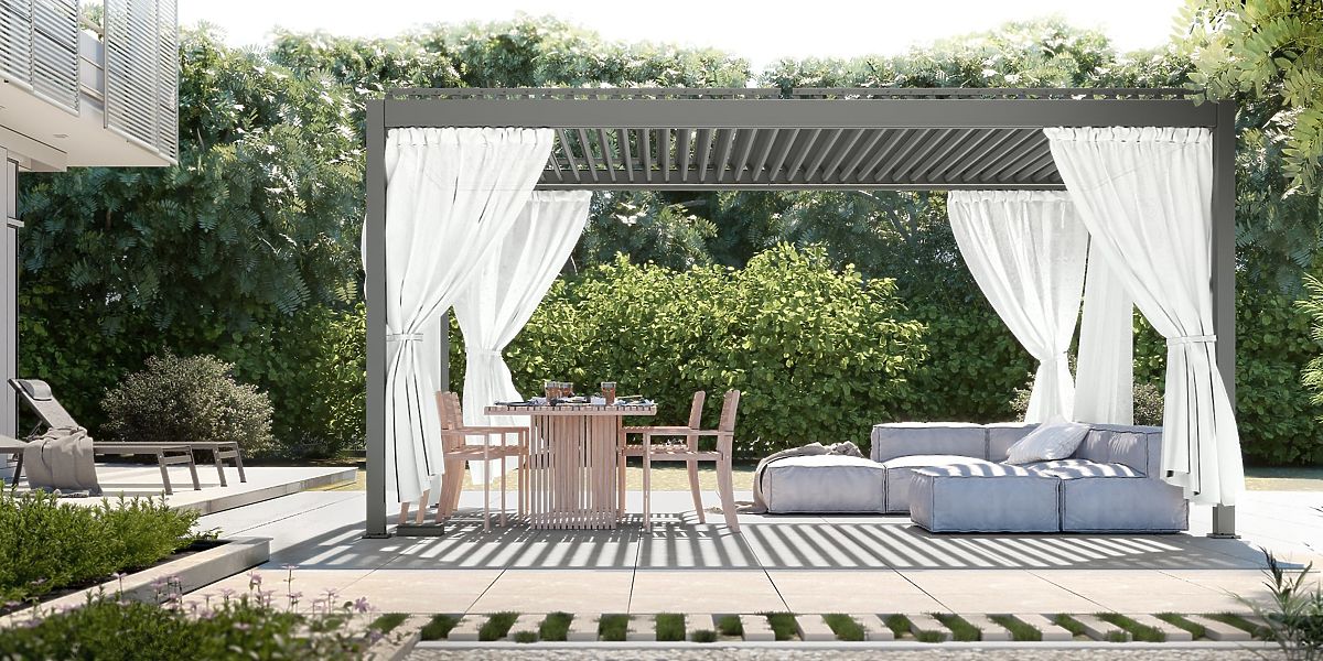 Szabadon álló Antilla alumínium kerti pergola, 5x3 m, bioklimatikus, mozgatható lamellákkal, antraci