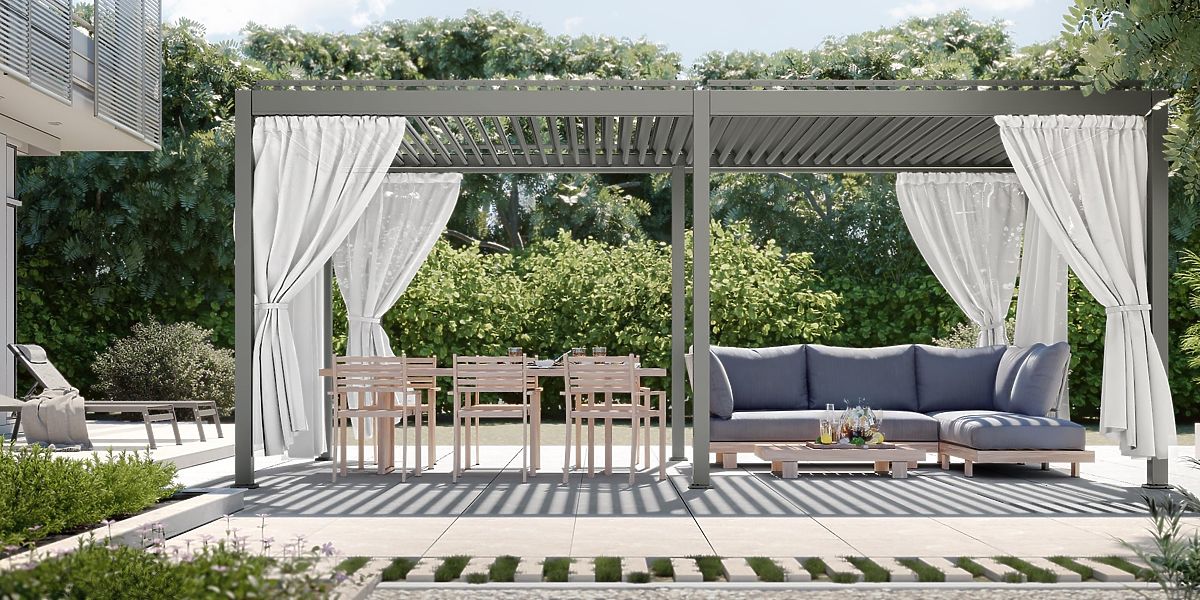Szabadon álló Antilla alumínium kerti pergola, 6x3 m, bioklimatikus, mozgatható lamellák, antracit