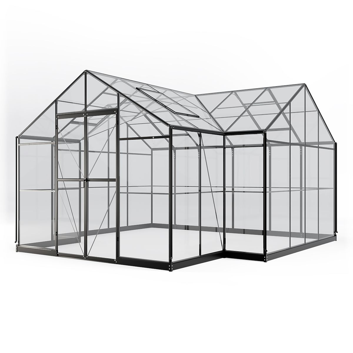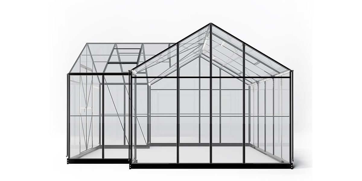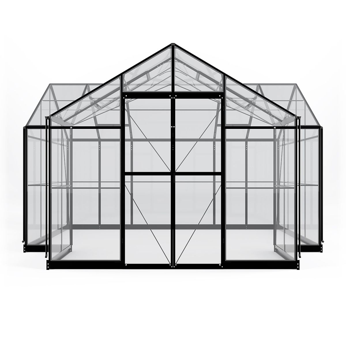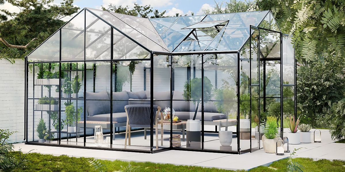 Kerti üvegház Royal Green Standard 16,6 m² alappal, edzett üveg 4 mm, alumínium, fekete