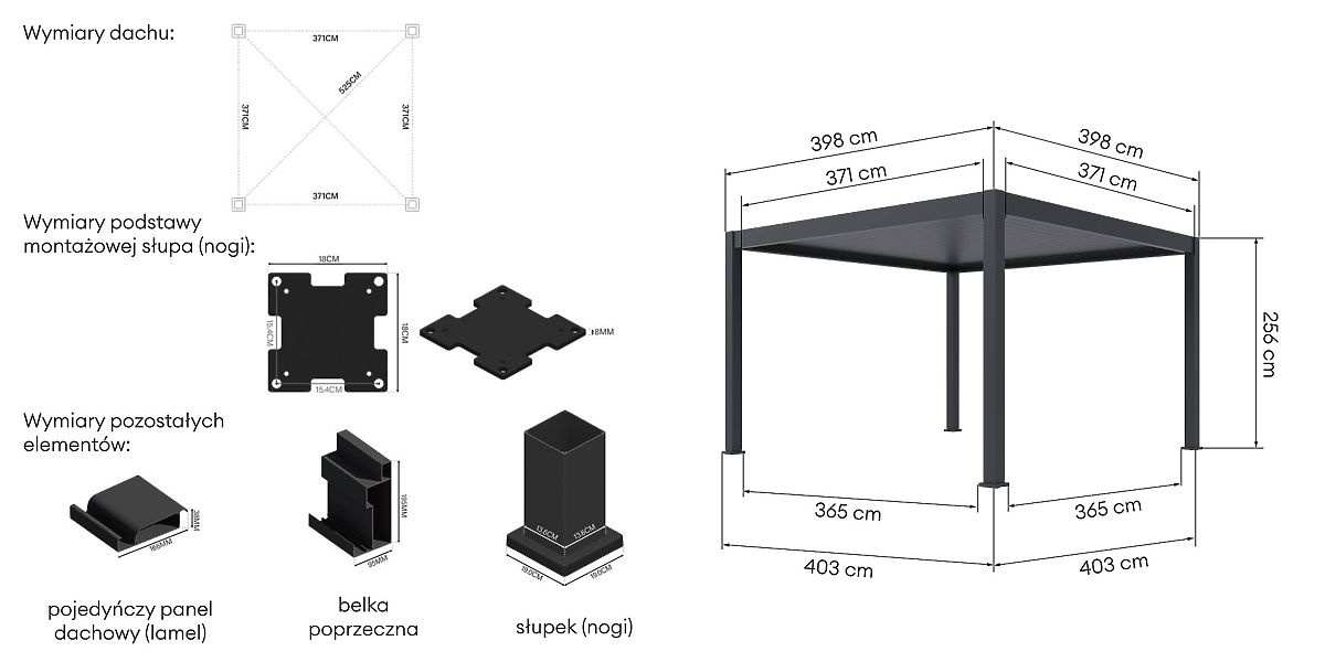 A Lumera alapja egy erős, korrózióálló alumínium elegáns, antracit színben. Ez az anyag nemcsak modern megjelenést biztosít, hanem páratlan tartósságot is. A szerkezet ellenáll az időjárás változásainak, és az acél megoldásokkal ellentétben nem rozsdásodik és nem terheli a szerkezetet. Ez egy biztos befektetés, amely évekig szolgálja Önt, és megőrzi hibátlan megjelenését.