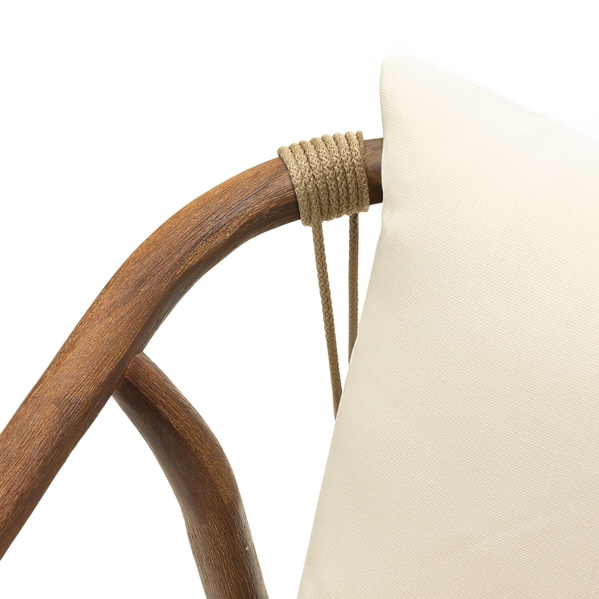 A garnitúra része hat stílusos szék, amelyek lekerekített akácfa váza stabilitást és tartósságot biztosít. A fonott háttámlák és ülőfelületek, amelyek tartós kötélből készültek, nemcsak vonzzák a tekintetet, hanem kiváló légáramlást is biztosítanak. Az egészet kényelmes párnák egészítik ki, amelyek a friss levegőn való pihenésre hívogatnak. Az alkalmazott szövet hidrofób tulajdonságokkal rendelkezik, de a tartósság megőrzése érdekében javasoljuk, hogy eső esetén védett helyen tárolja.